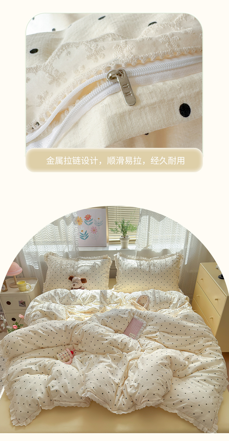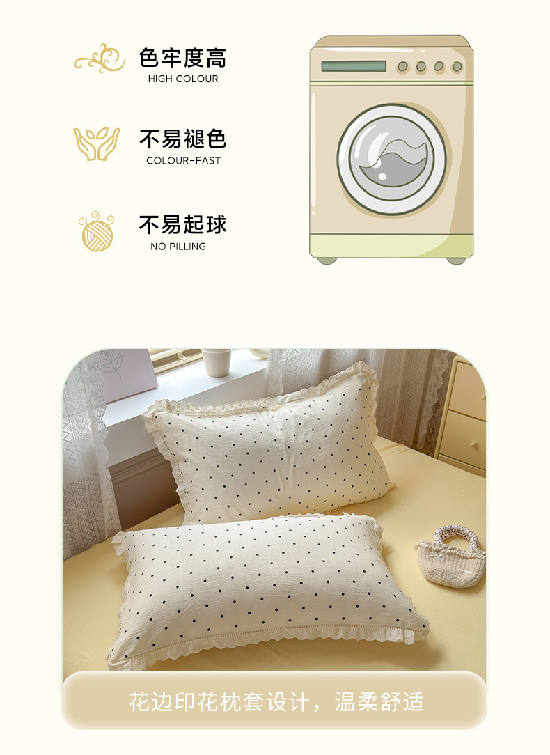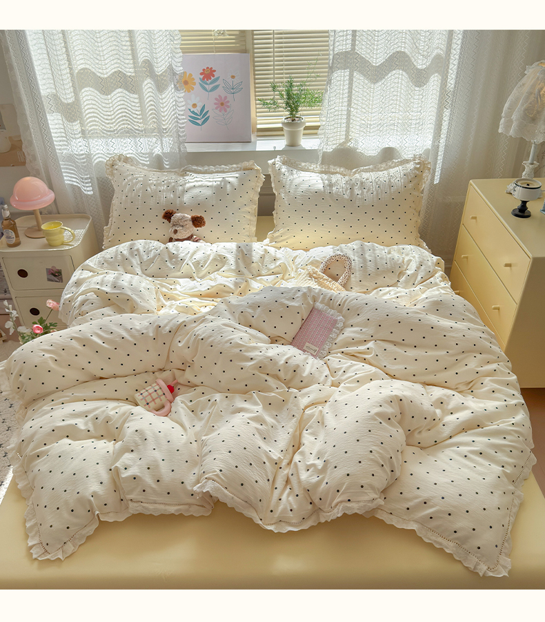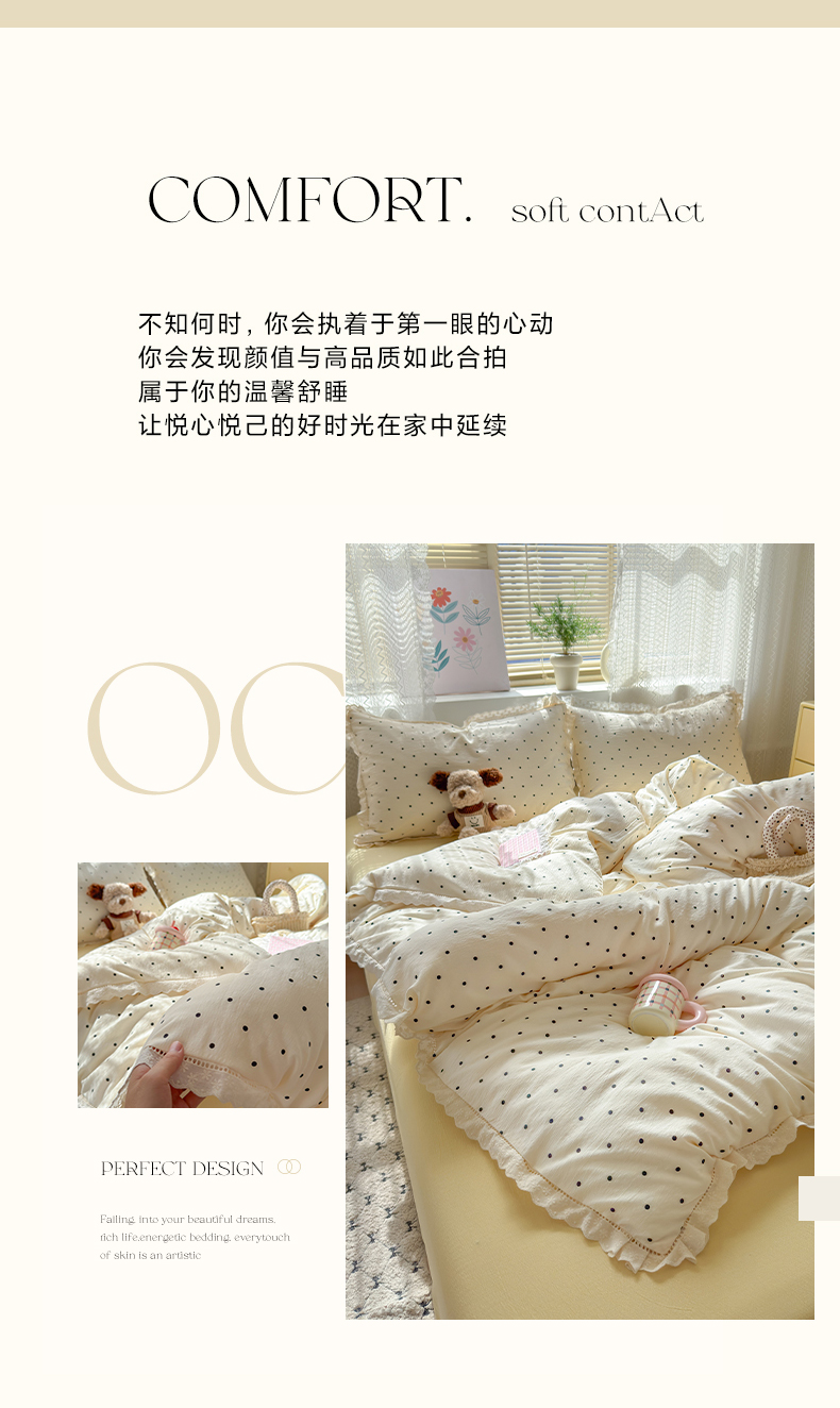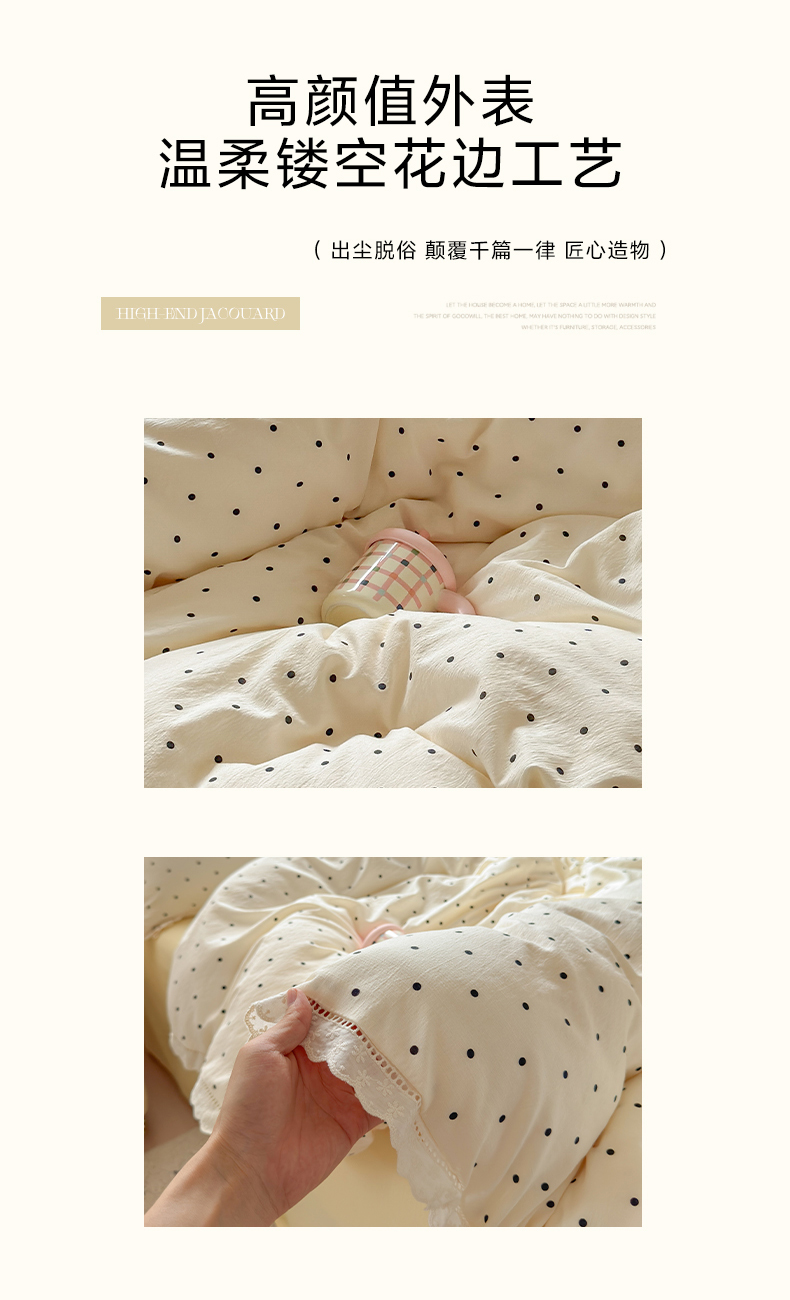当前位置: 91家纺网 > 商品网购 > 床品套件 > 四件套 > 其它四件套 > 喜颜 2025新款爆款云感提花皱皱纱全棉镂空花边四件套学生宿舍三件套 镂空花边-波点奶黄