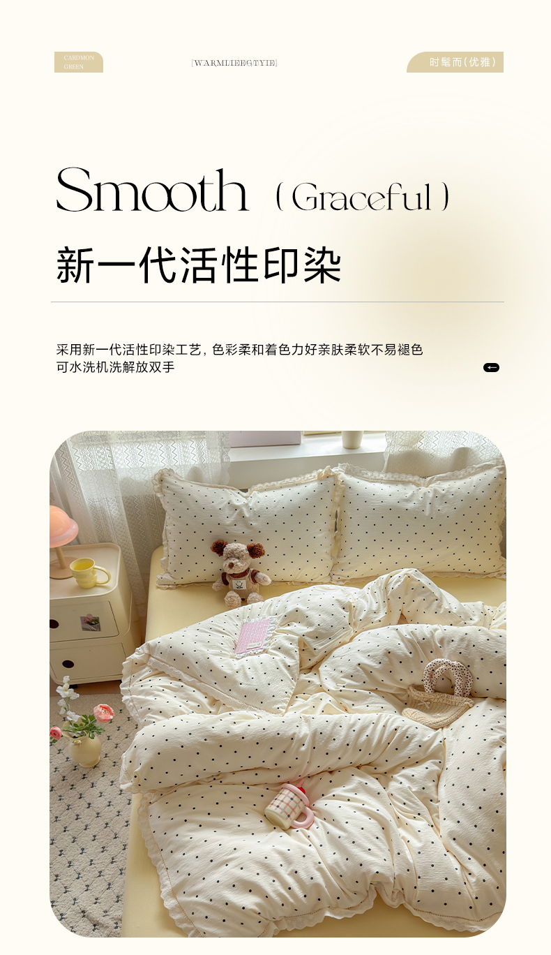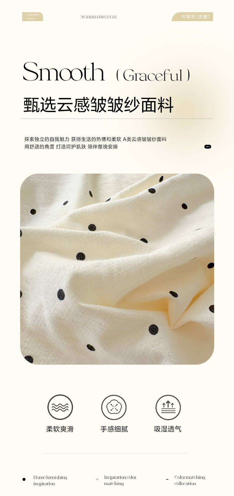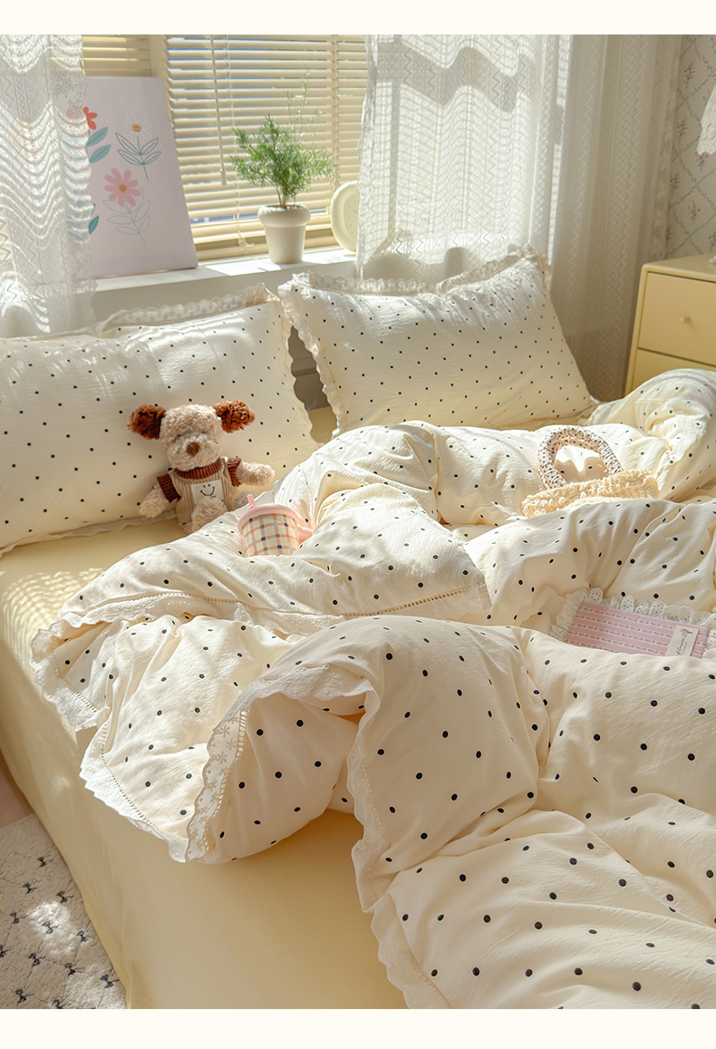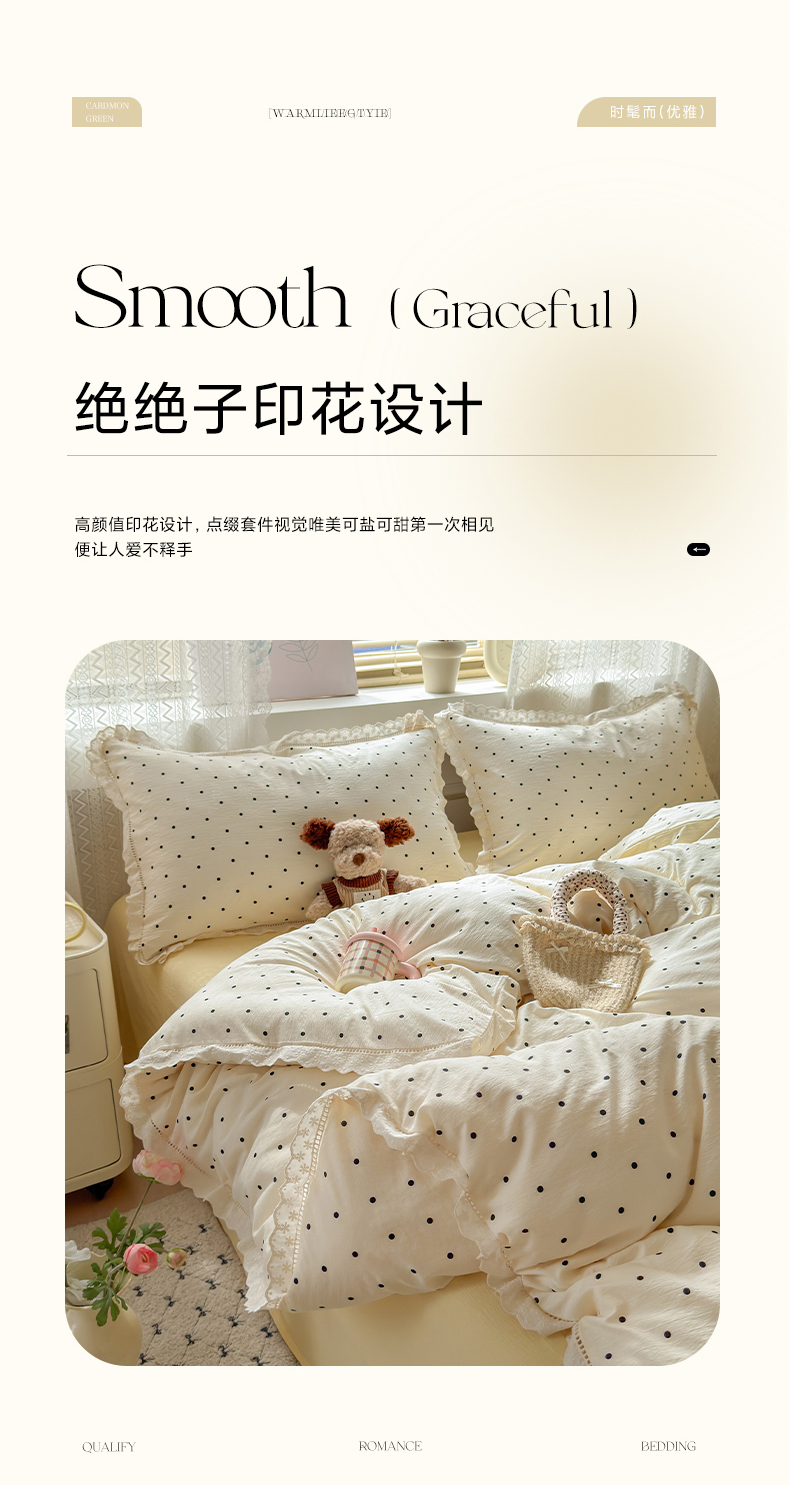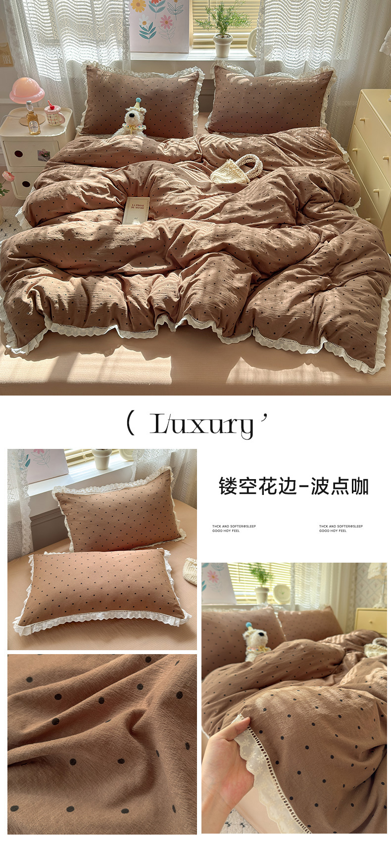 当前位置: 91家纺网 > 商品网购 > 床品套件 > 四件套 > 其它四件套 > 喜颜 2025新款爆款云感提花皱皱纱全棉镂空花边四件套学生宿舍三件套 镂空花边-波点奶黄