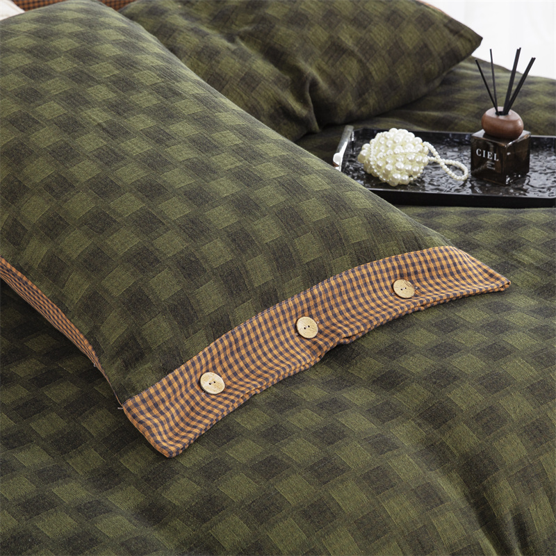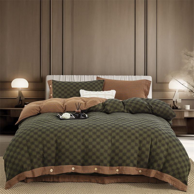 (总)双层纱家居 2025新款黑大格双层纱四件套,黑大格