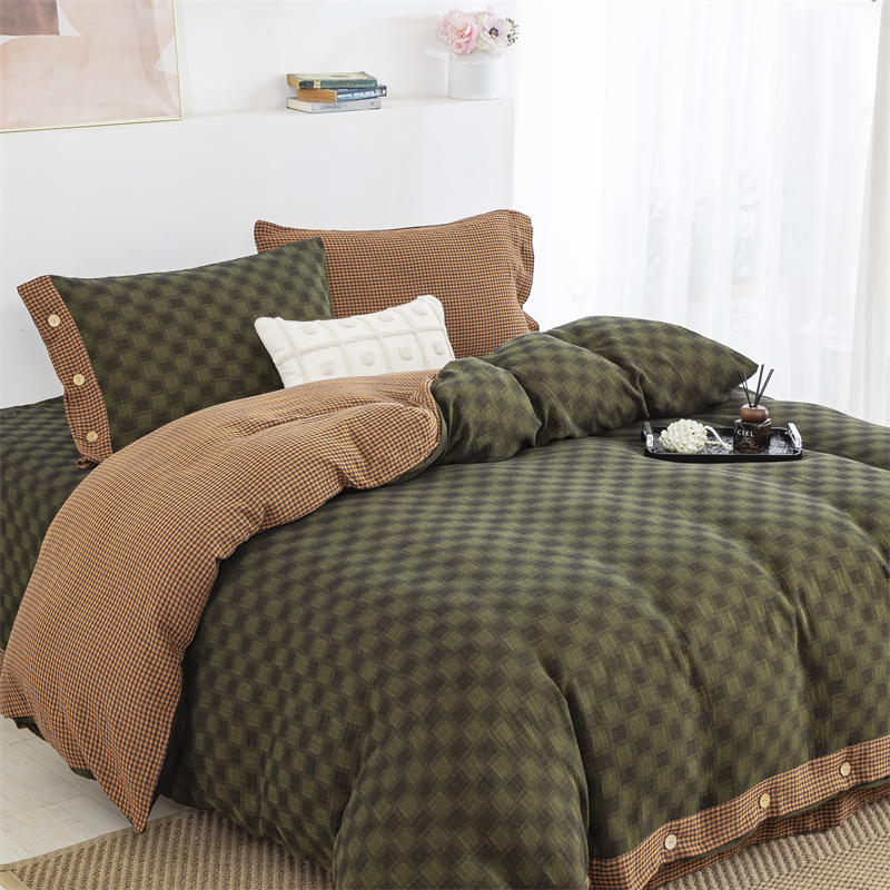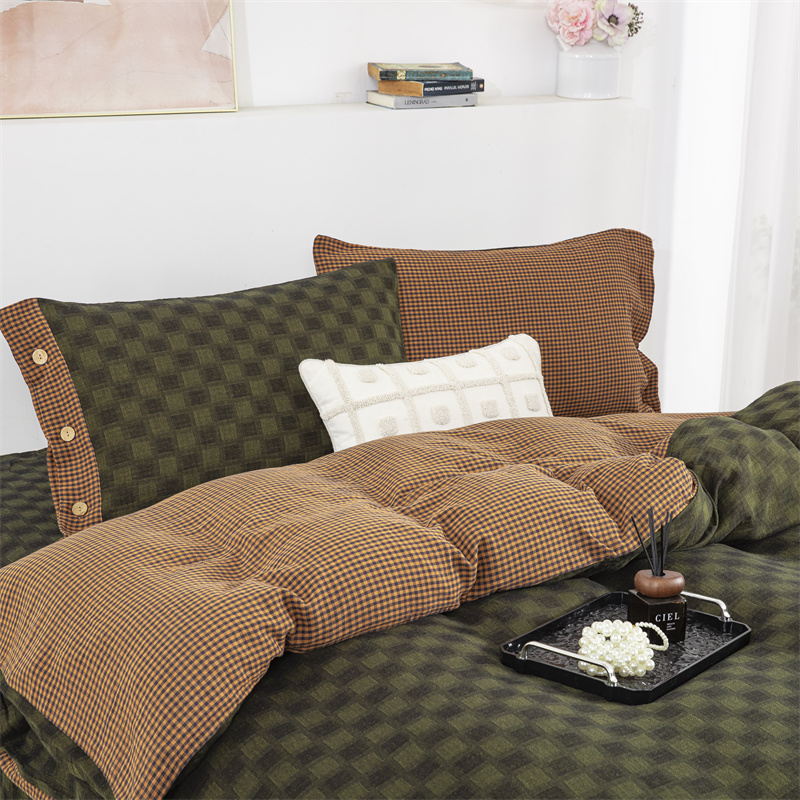 商品名称:双层纱家居 2025新款格子款双层纱四件套 朦胧格禄