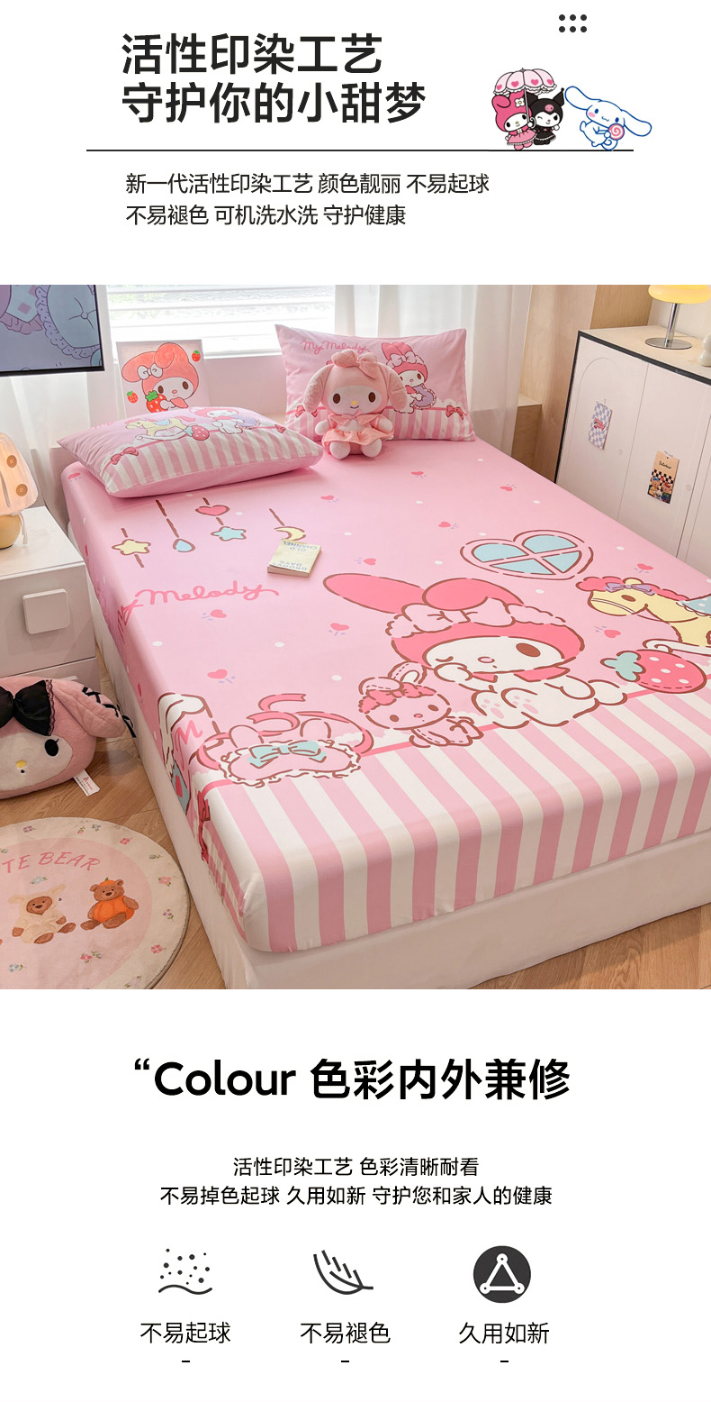 暮思家居 2025新款正版授权三丽鸥大阪全棉数码印花纯棉单品床笠床笠单件单床笠(专版花型) 棉A版-条纹美乐蒂