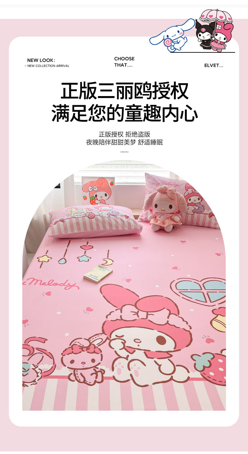 • 91家纺网 家纺一手货源 找家纺 暮思家居 2025新款正版授权三丽鸥大阪全棉数码印花纯棉单品床笠床笠单件单床笠(专版花型) 棉A版-条纹美乐蒂