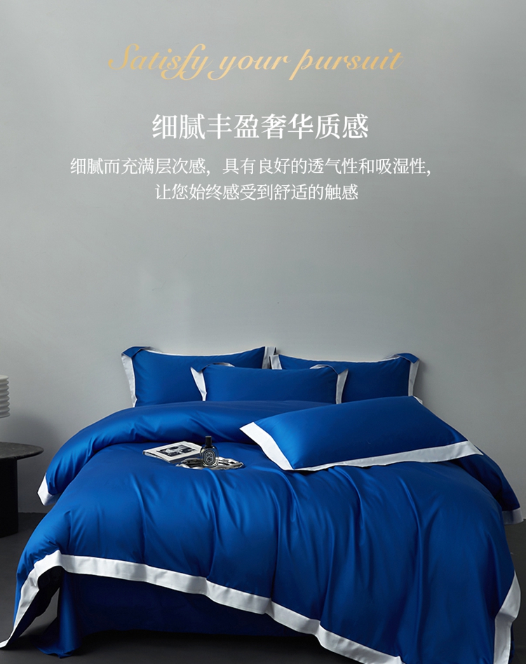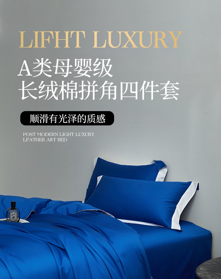 柔觉家纺 新款50*50双股长绒棉纯色拼角四件套 雅-活力蓝
