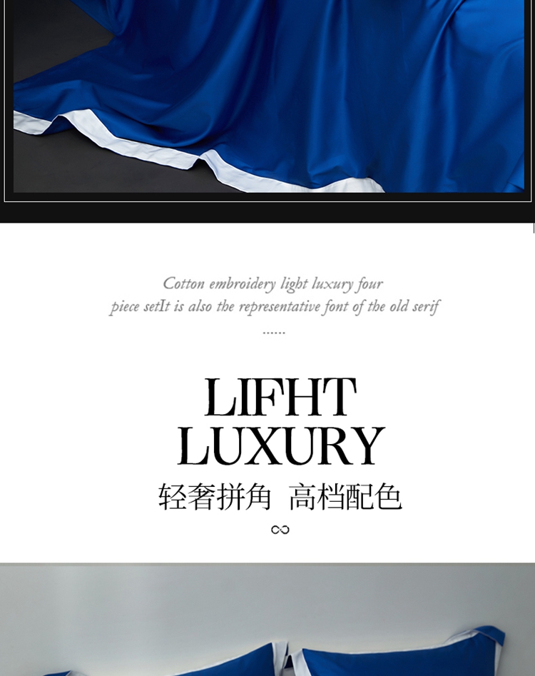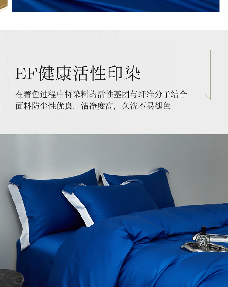 商品名称:柔觉家纺 新款50*50双股长绒棉纯色拼角四件套 雅-活力蓝