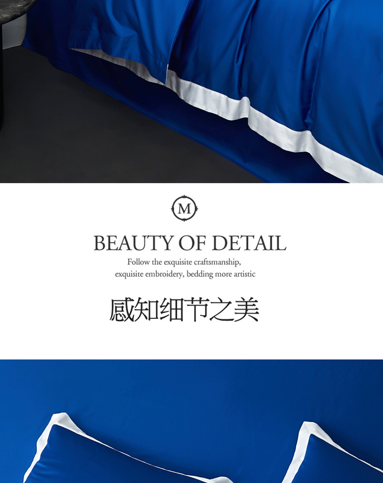 柔觉家纺 天丝刺绣贡缎提花全棉四件套,柔梦-海蓝