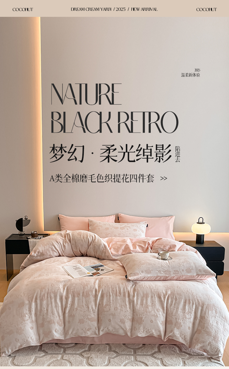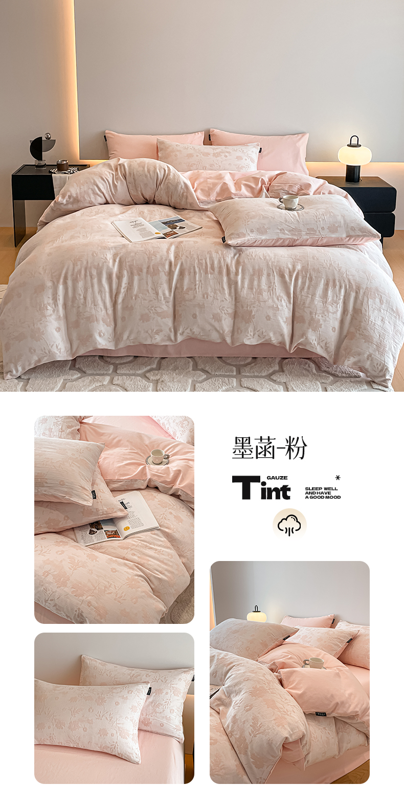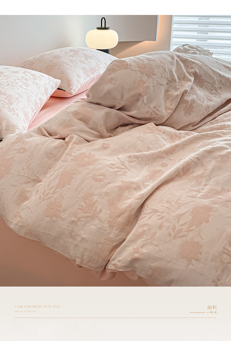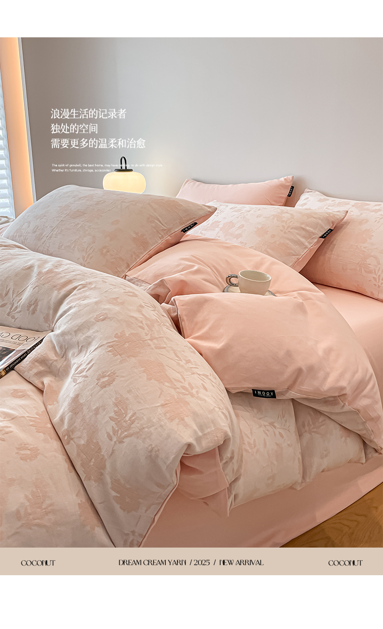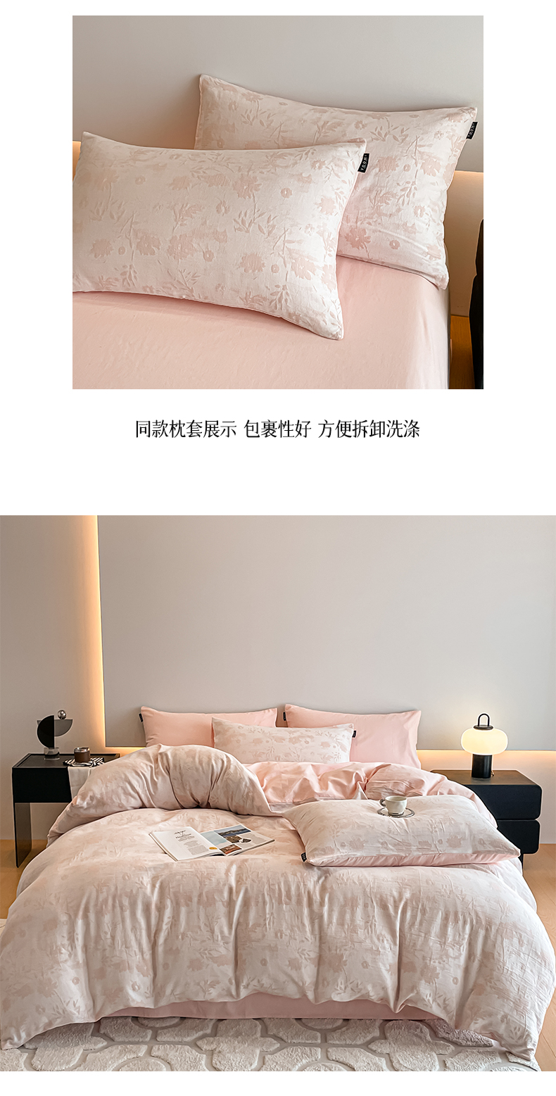 当前位置: 91家纺网 > 商品网购 > 床品套件 > 四件套 > 普通磨毛四件套 > 涵宸家纺 2025新款全棉磨毛色织提花四件套 墨菡-粉