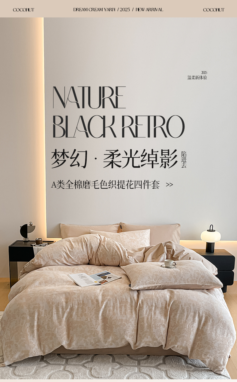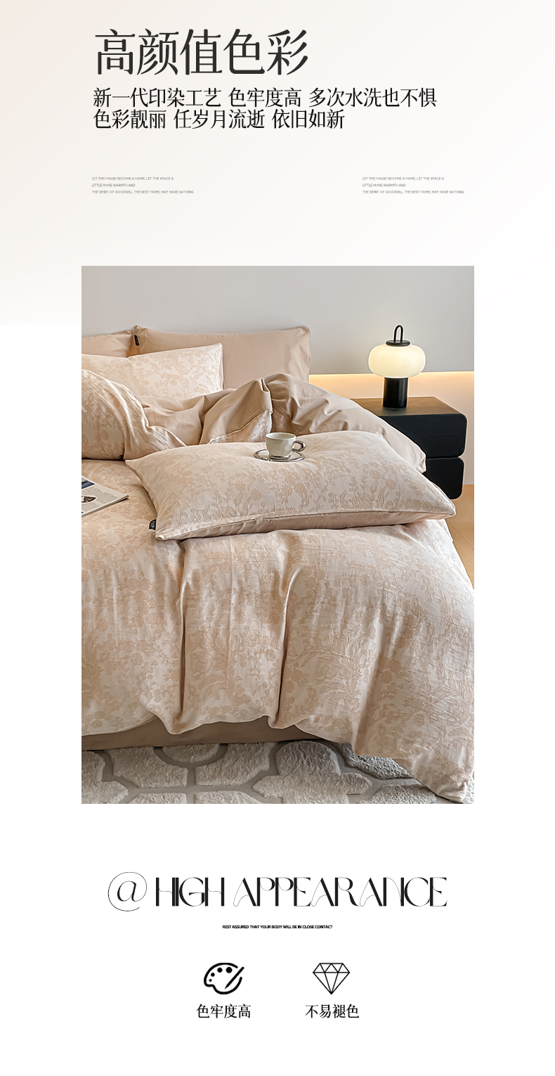 当前位置: 91家纺网 > 商品网购 > 床品套件 > 四件套 > 普通磨毛四件套 > 涵宸家纺 2025新款全棉磨毛色织提花四件套 韵绣