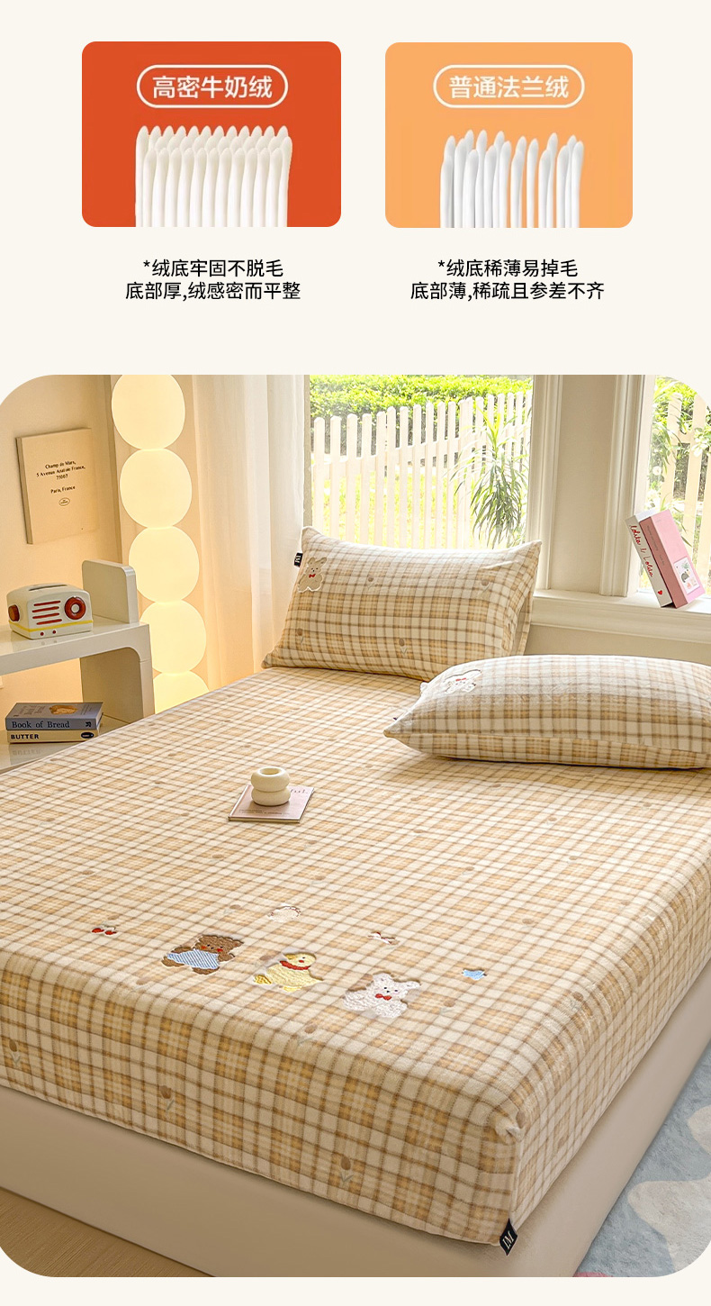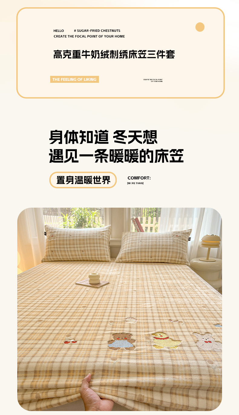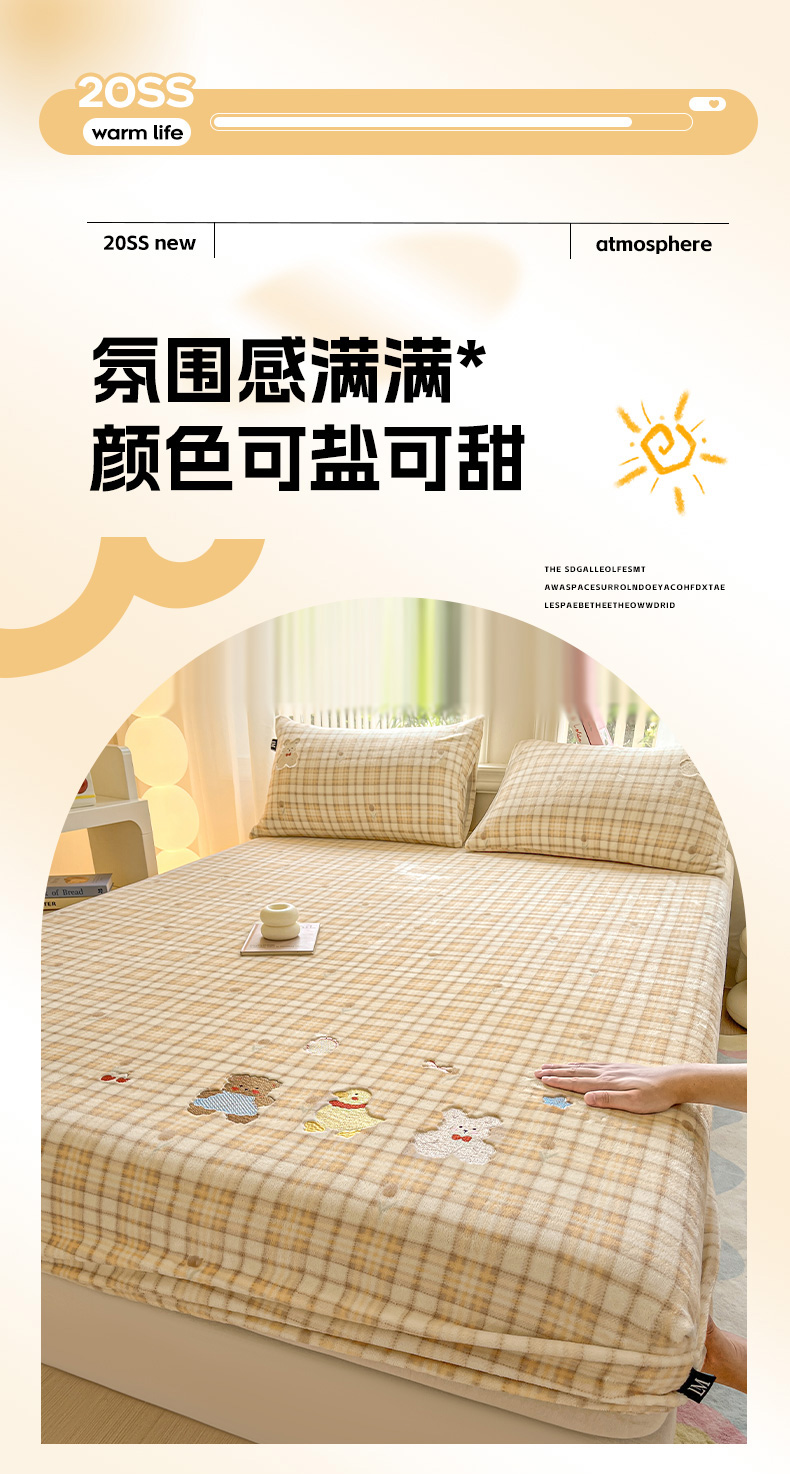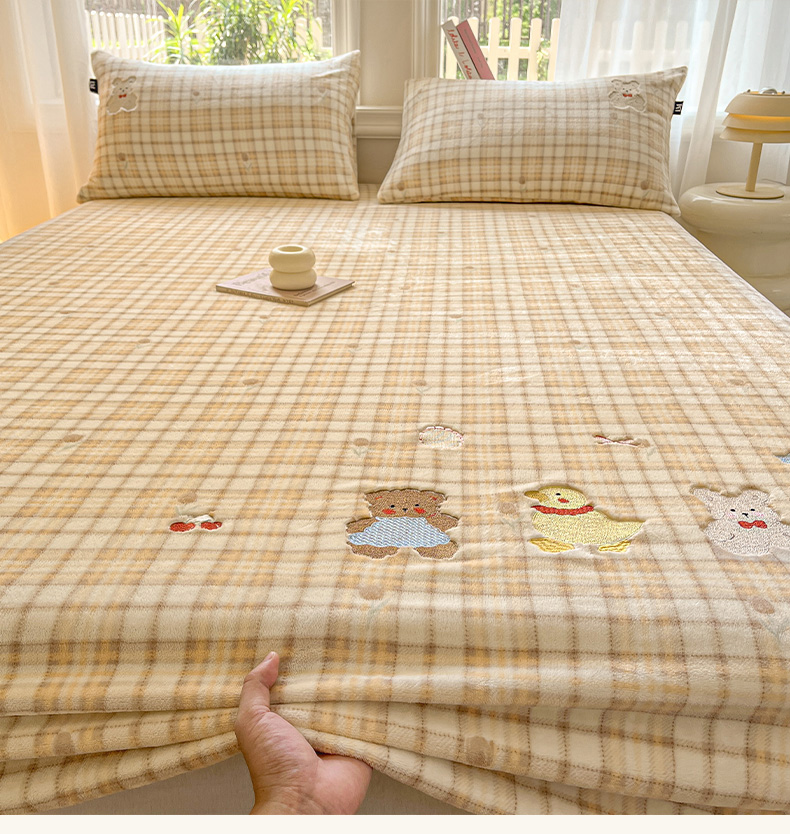(总)乐美家纺 2025新款A类高克重刺绣牛奶绒床笠三件套,好朋狗,森林乐队,熊熊派对,小熊奶盖,萌宠派对,萝莉猫