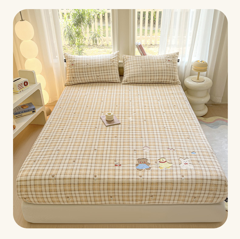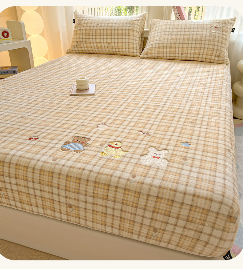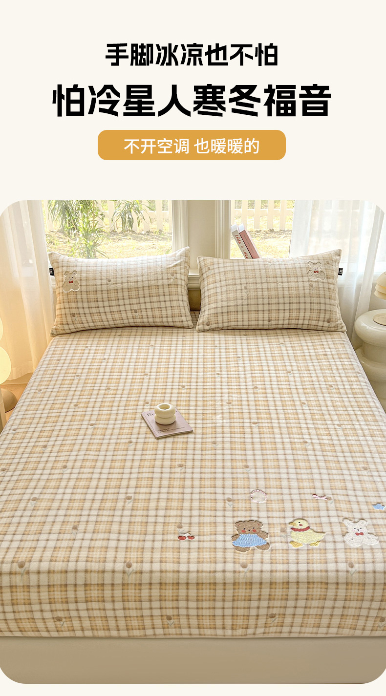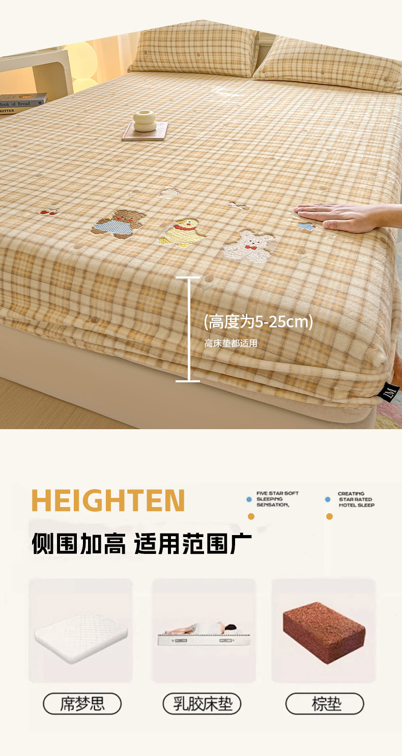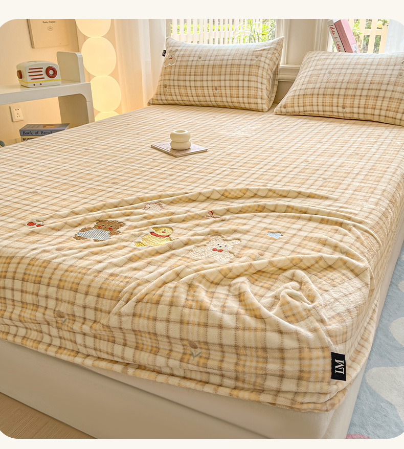 (总)乐美家纺 2025新款A类高克重刺绣牛奶绒床笠三件套,好朋狗,森林乐队,熊熊派对,小熊奶盖,萌宠派对,萝莉猫