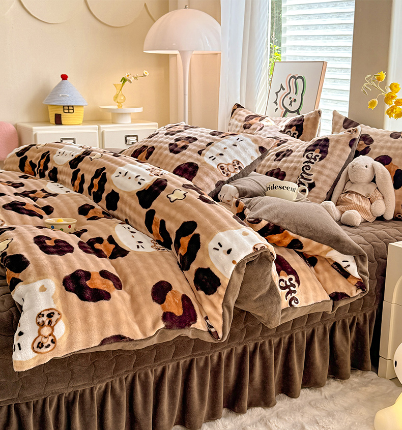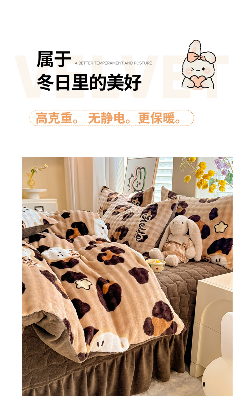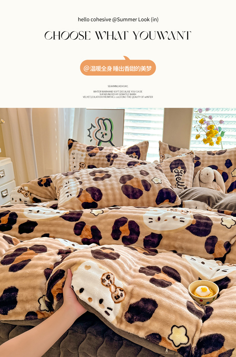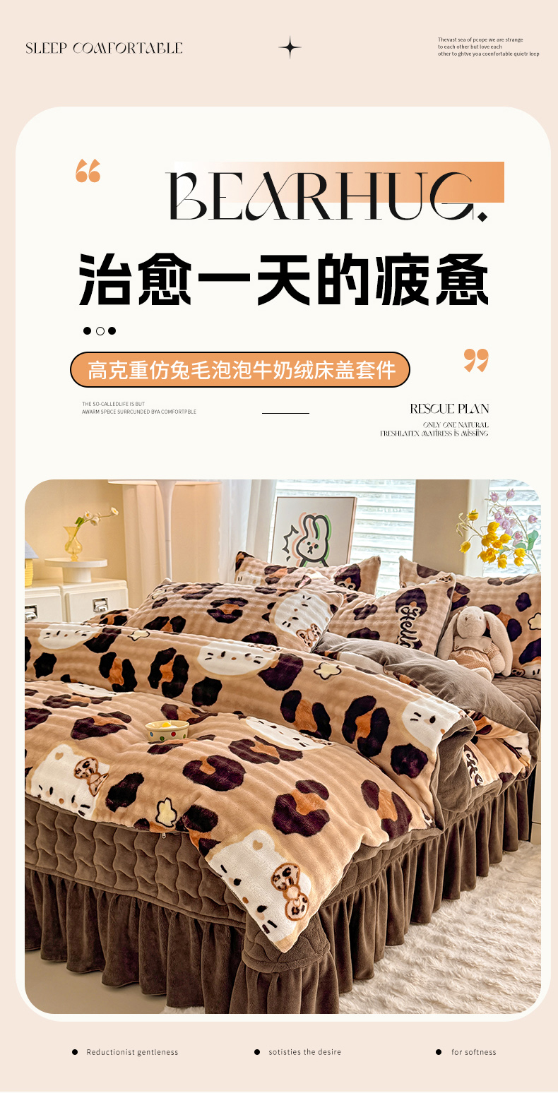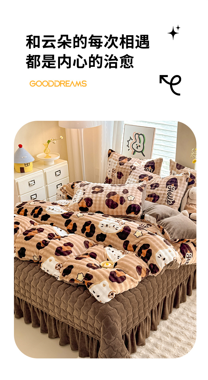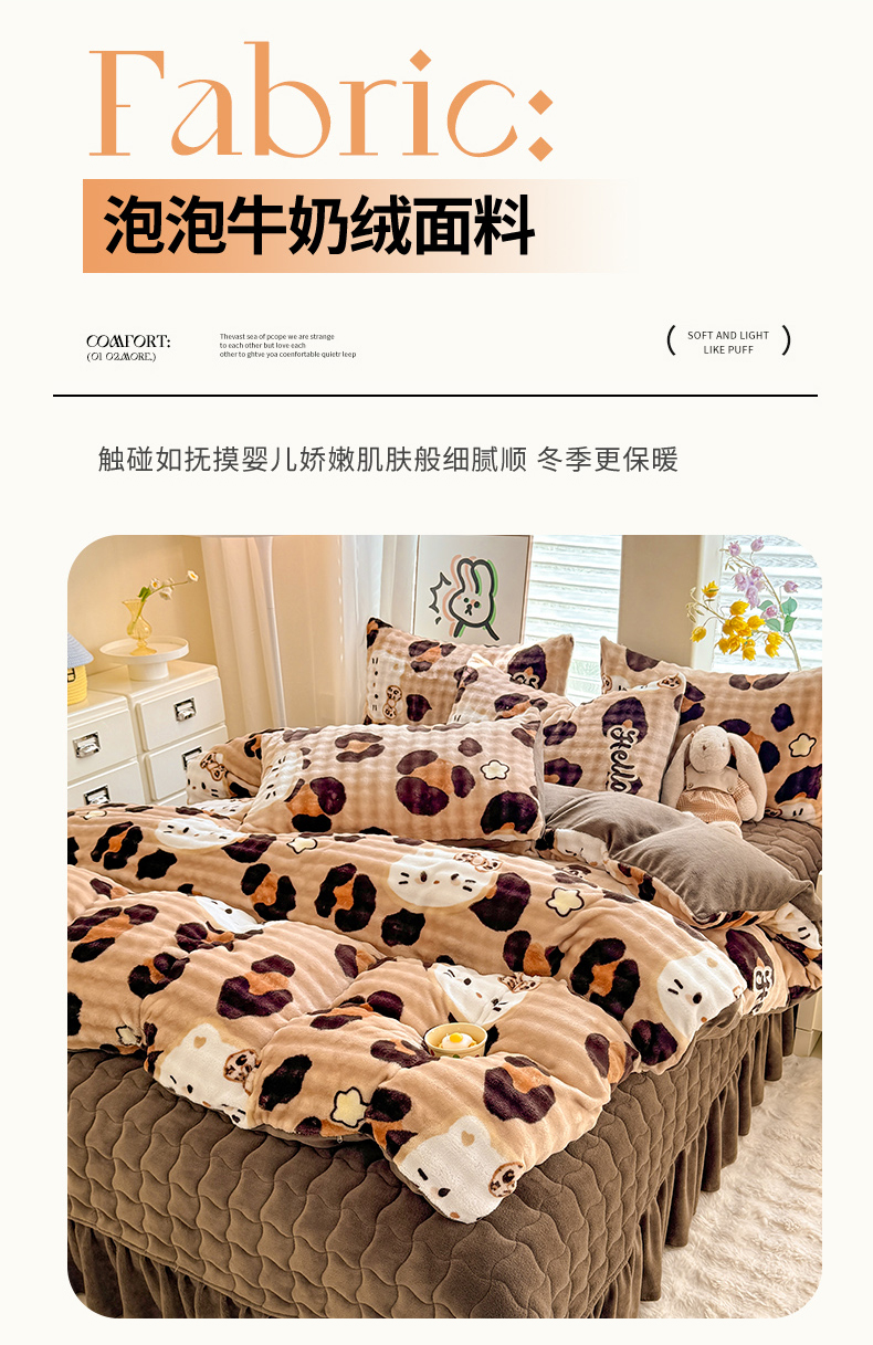 当前位置: 91家纺网 > 商品网购 > 床品套件 > 四件套 > 牛奶绒四件套 > 金盛皇朝家纺 2025新款高克重仿兔毛泡泡牛奶绒床单床盖单件三件四件套 豹纹猫仔