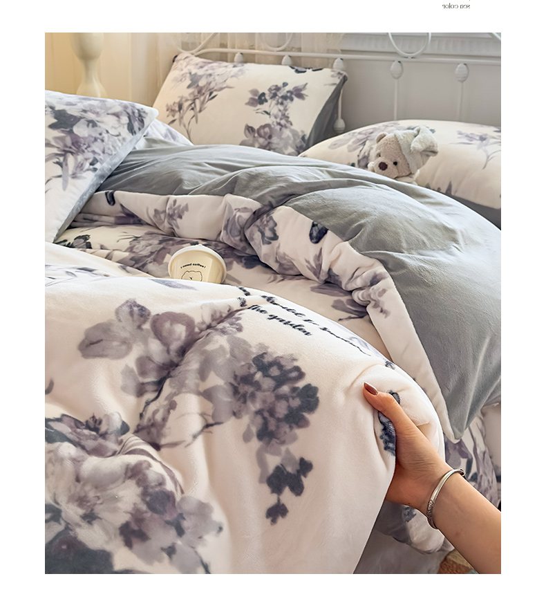 潮邦创意家居 2025新款5D数码牛奶绒印花系列四件套 恋薇