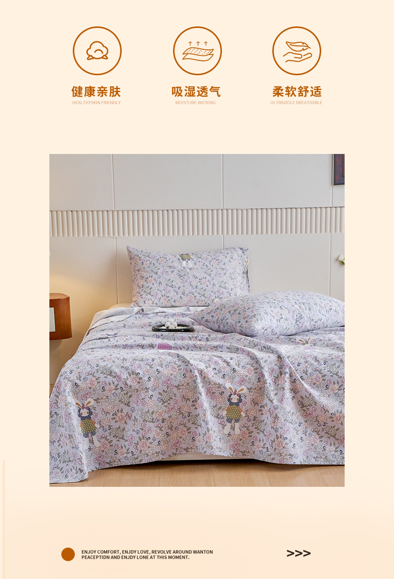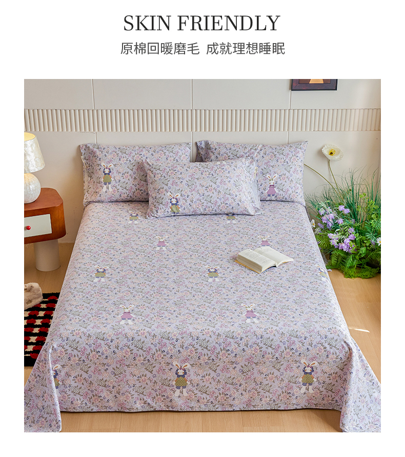 春皖家纺 2025新款原棉磨毛单床单 床单单件-风格一萌萌兔