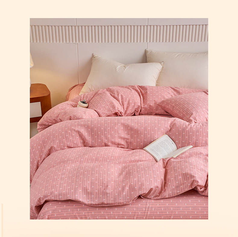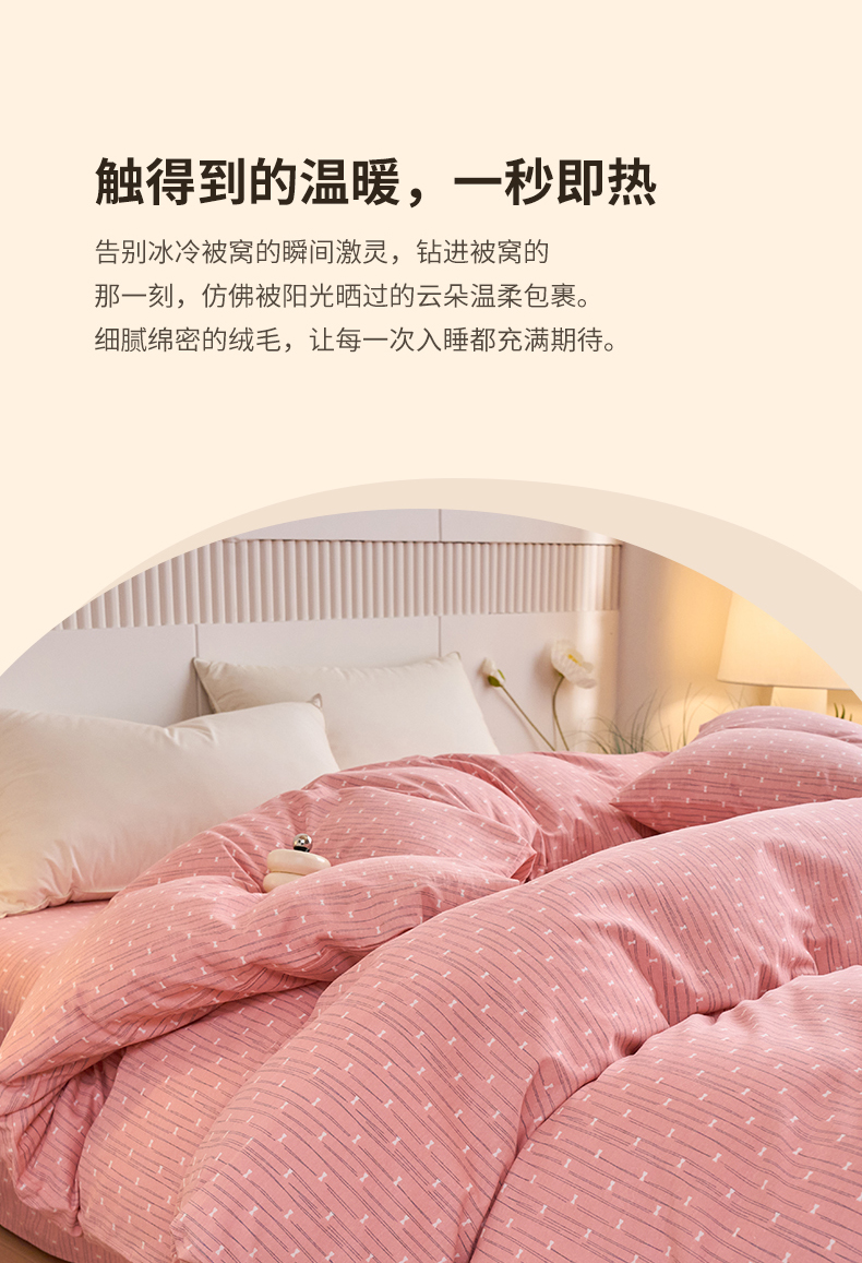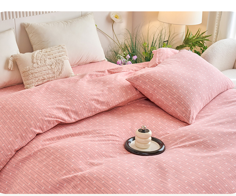 商品名称:春皖家纺 2025新款全棉原棉磨毛色织水洗单被套回暖系列-风格二 梦妮粉