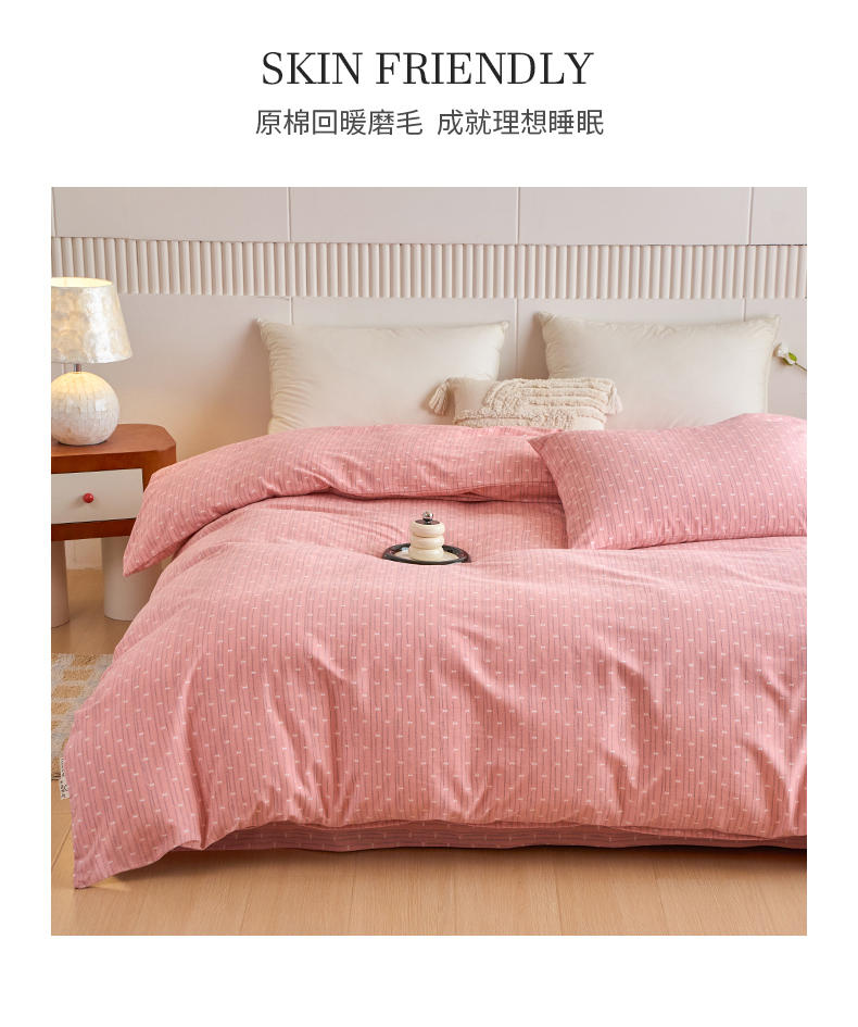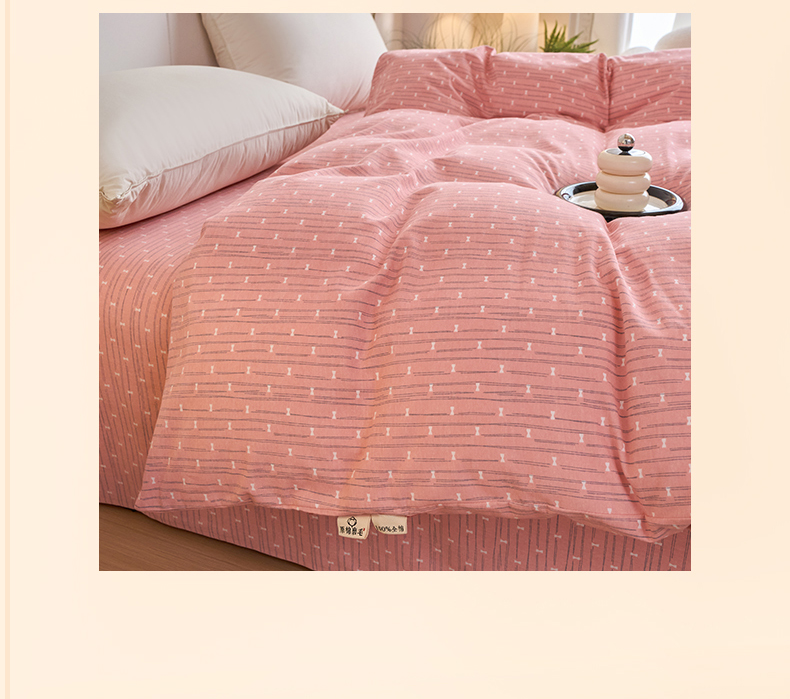 春皖家纺 2025新款全棉原棉磨毛色织水洗单被套回暖系列-风格二 梦妮粉