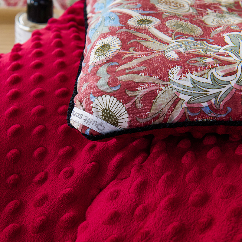 商品名称:小鱼儿家纺 2025新款全棉豆豆被冬被被子 曼德拉-红