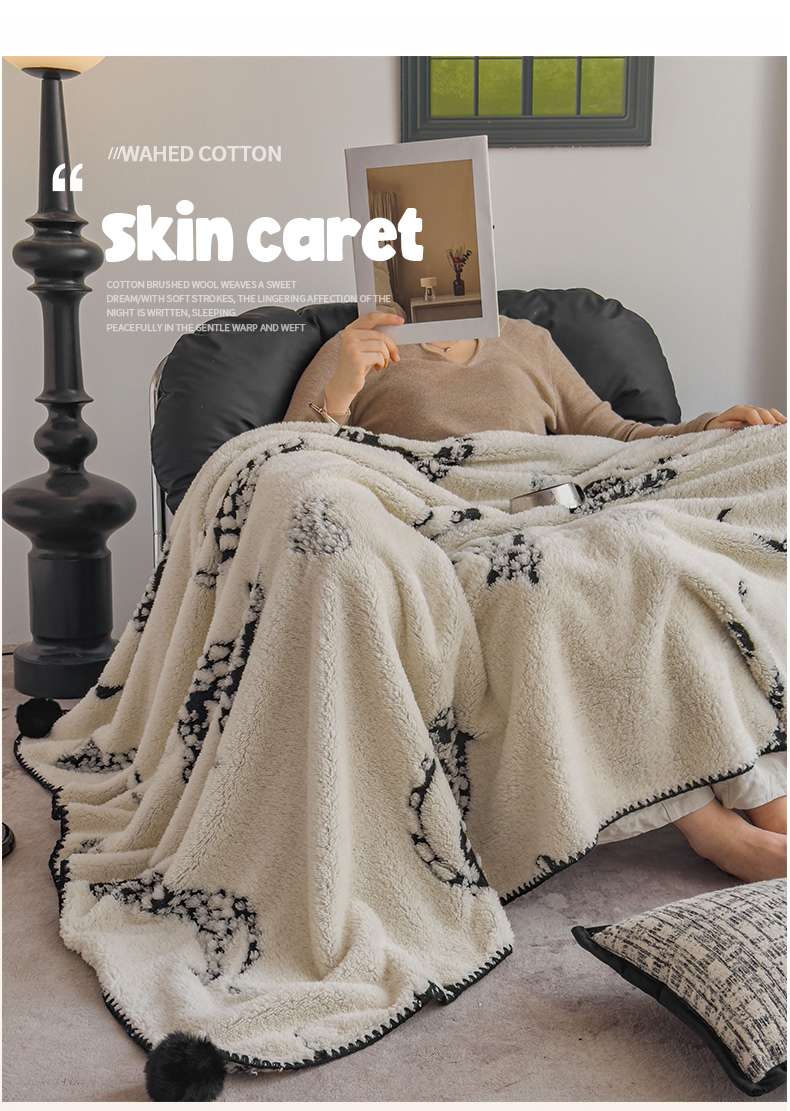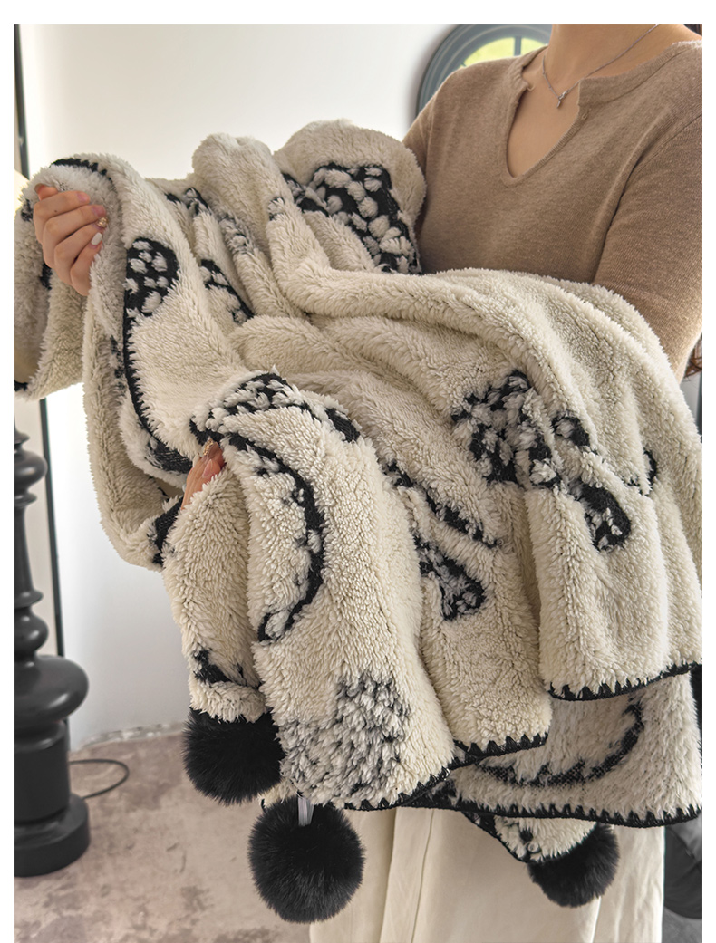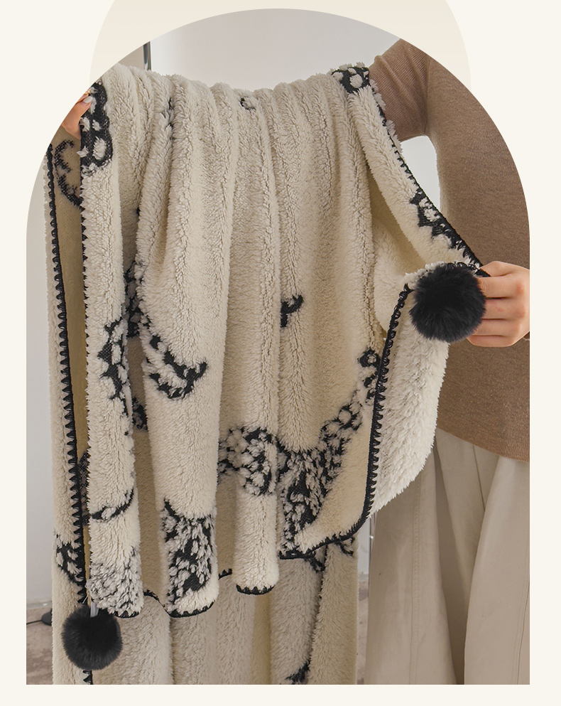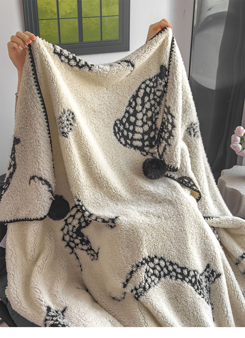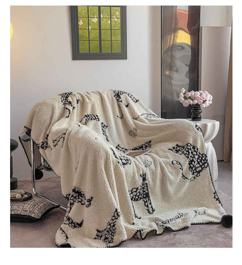 商品名称:潮邦创意家居 2025新款提花色织三角针工艺球毯毛毯毯子墨绒秘境 墨绒秘境系列-豹影