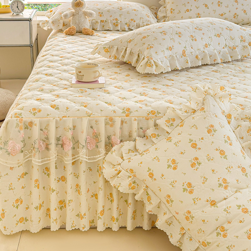 (总)雨田 2021新款韩版双边夹棉床裙三件套,春之絮,极简生活,情深似海,如意芳菲,小香风,星光飘絮,玉兰