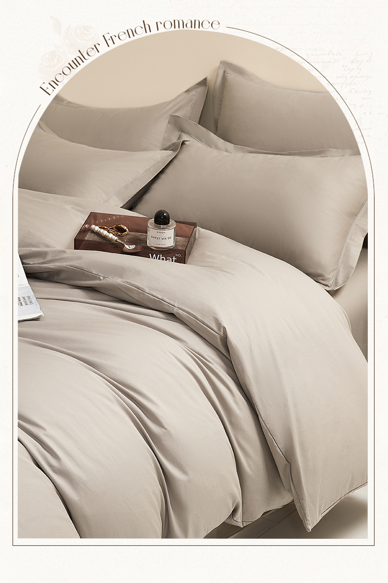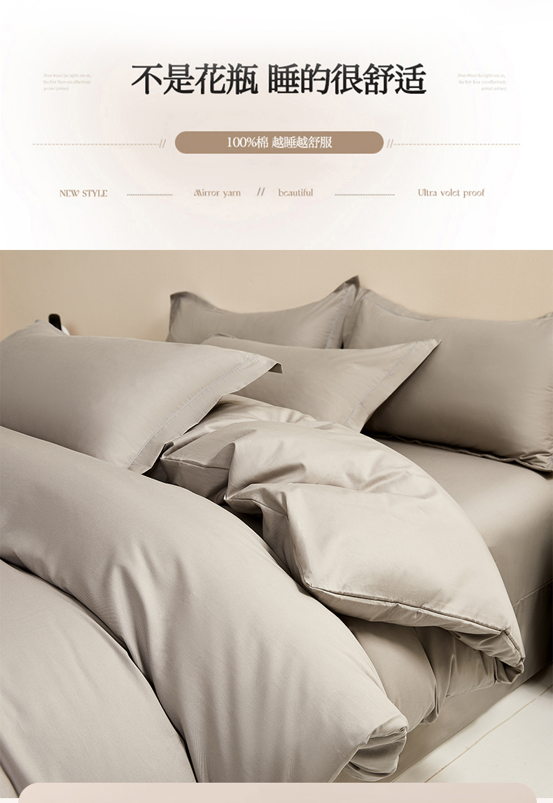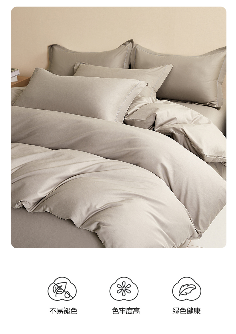当前位置: 91家纺网 > 商品网购 > 床品套件 > 四件套 > 全棉普通四件套 > 名优家纺 2026新款60S13374高支密全棉印花纯色四件套 浅灰