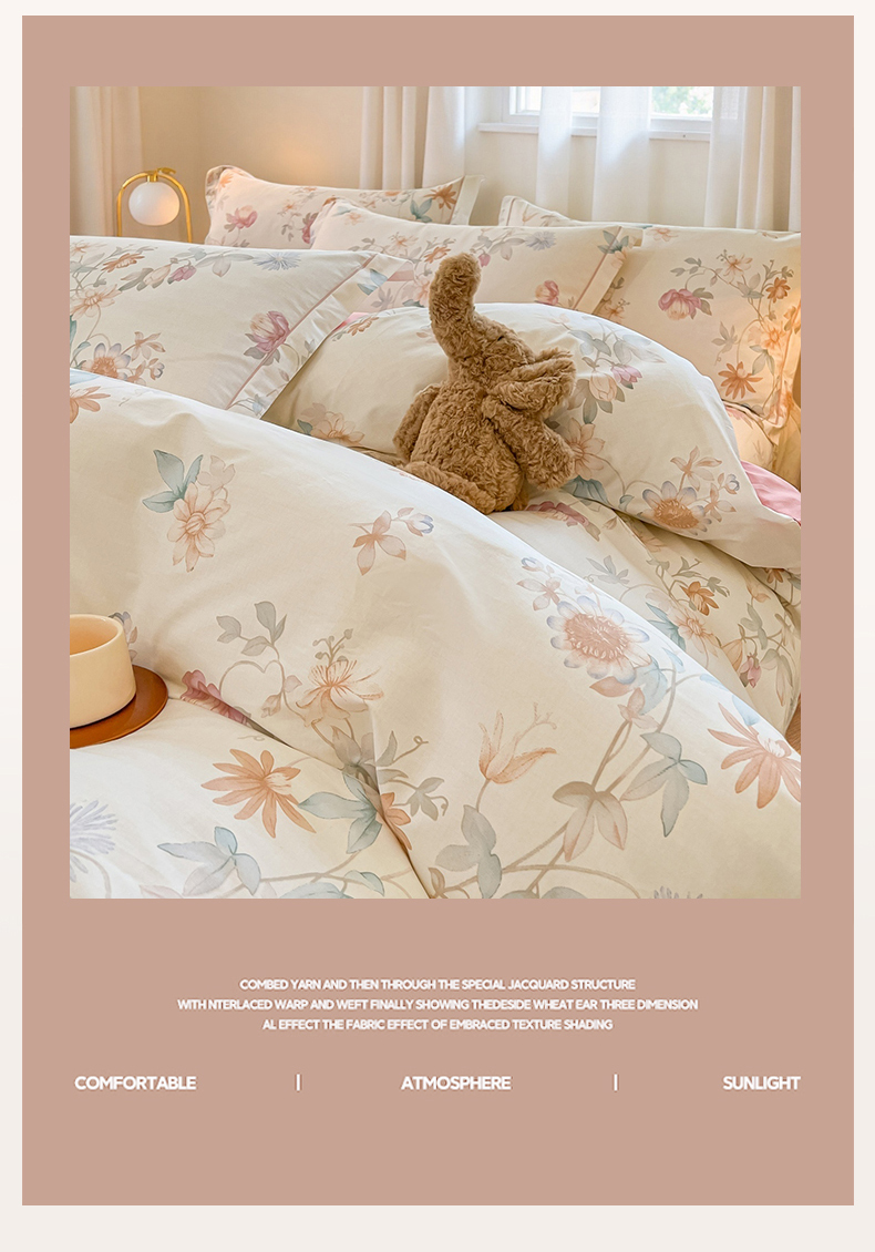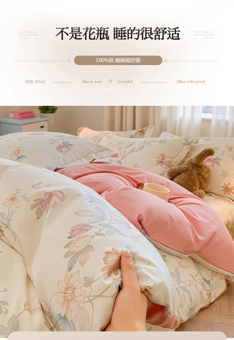 当前位置: 91家纺网 > 商品网购 > 床品套件 > 四件套 > 全棉普通四件套 > 名优家纺 2026新款60S13374高支密全棉印花纯色四件套 与美集