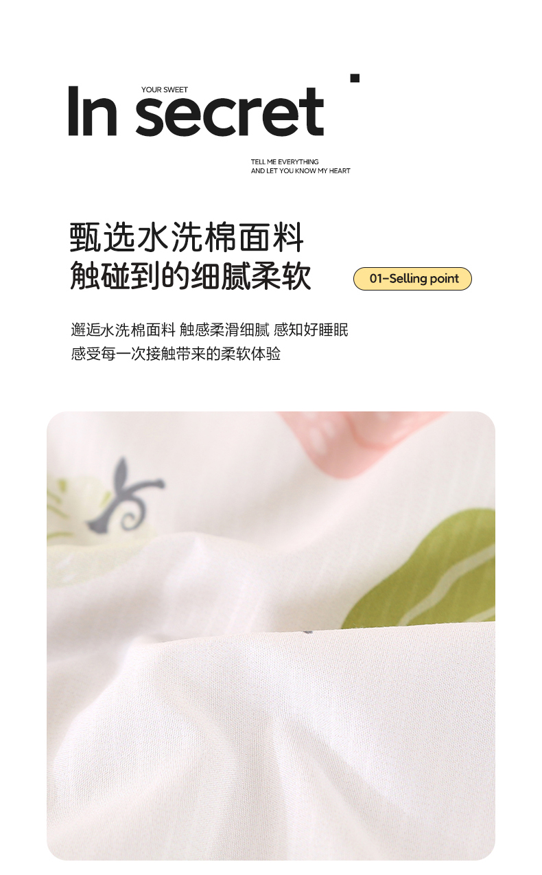 延遥 2026新款亲肤水洗棉夏被夏凉被夏被四件套 花想容,花想容