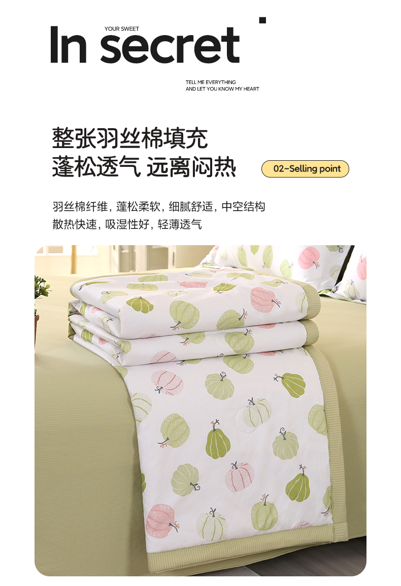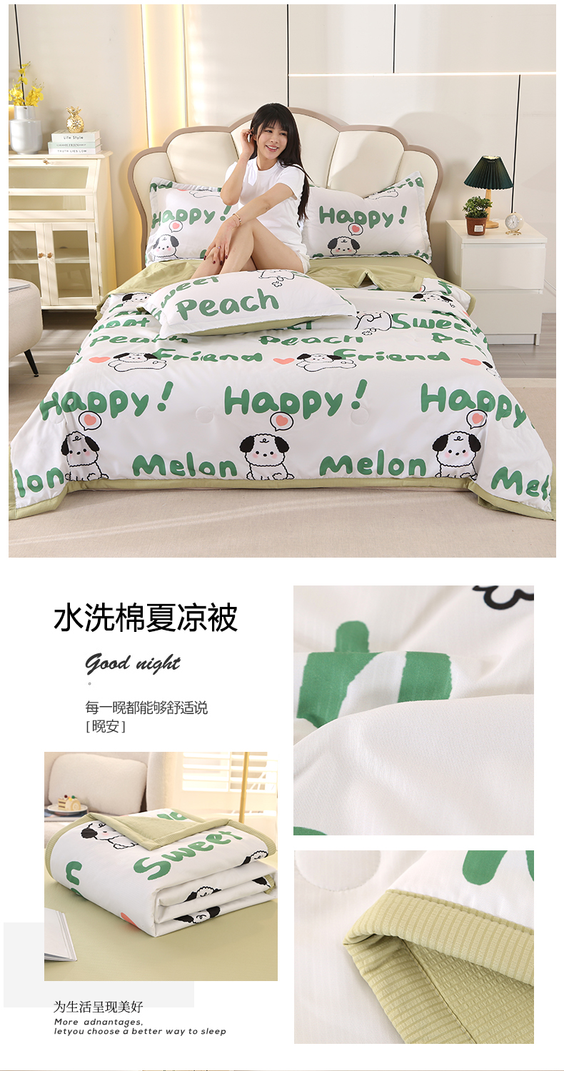 延遥 2026新款亲肤水洗棉夏被夏凉被夏被四件套 爱心绿,爱心绿