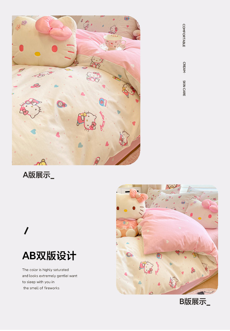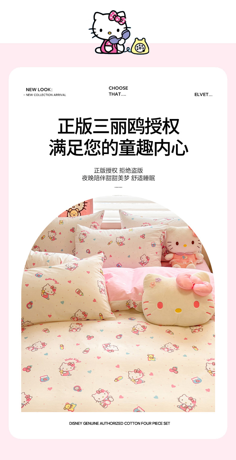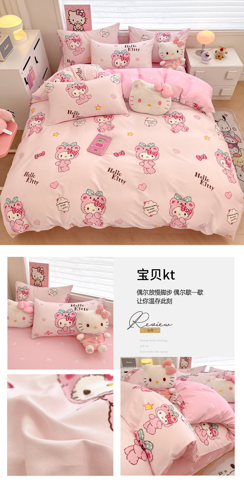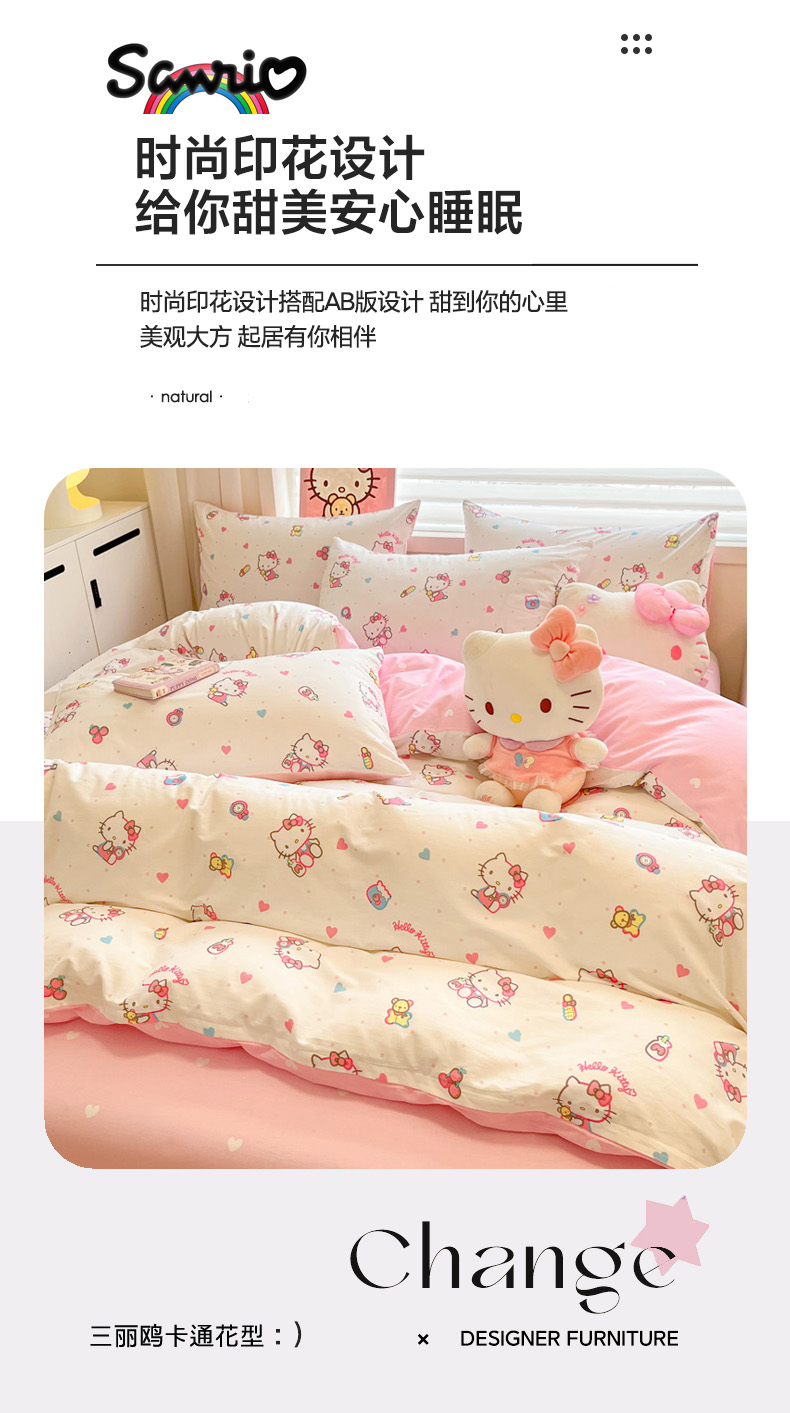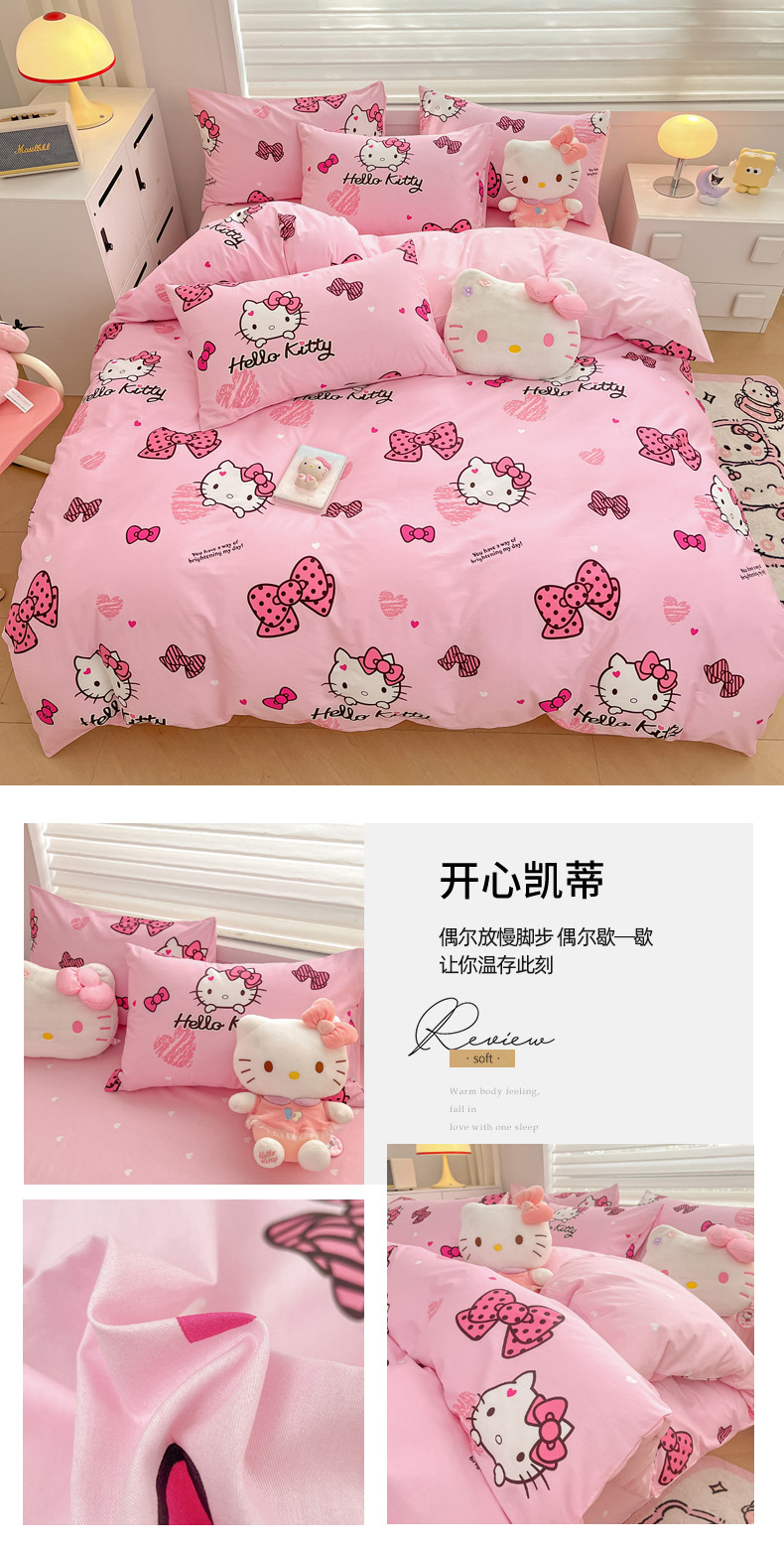 当前位置: 91家纺网 > 商品网购 > 床品套件 > 四件套 > 全棉普通四件套 > 暮思家居 2026新款正版授权三丽鸥全棉纯棉四件套系列-第一批 甜甜凯蒂