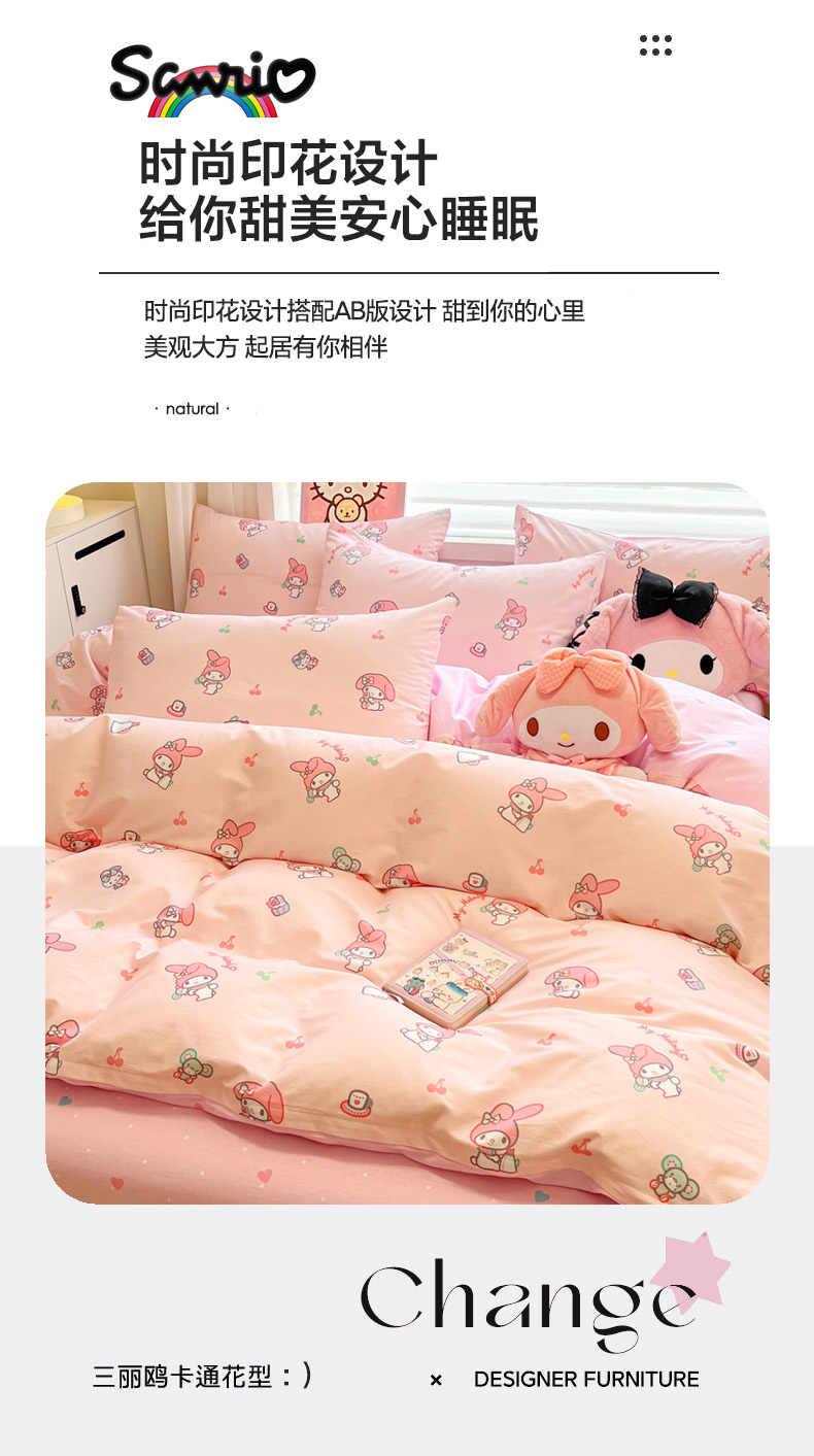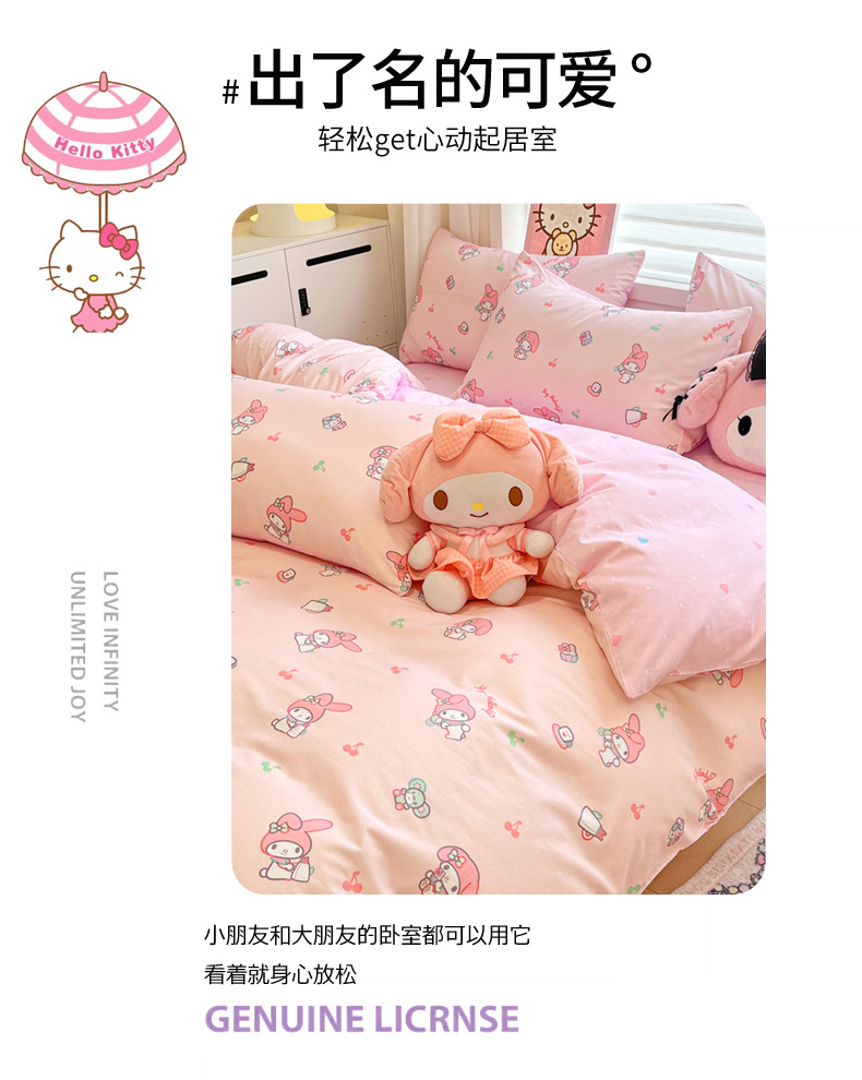 当前位置: 91家纺网 > 商品网购 > 床品套件 > 四件套 > 全棉普通四件套 > 暮思家居 2026新款正版授权三丽鸥全棉纯棉四件套系列-第一批 元气美乐蒂