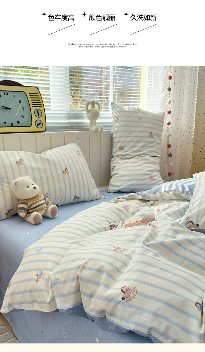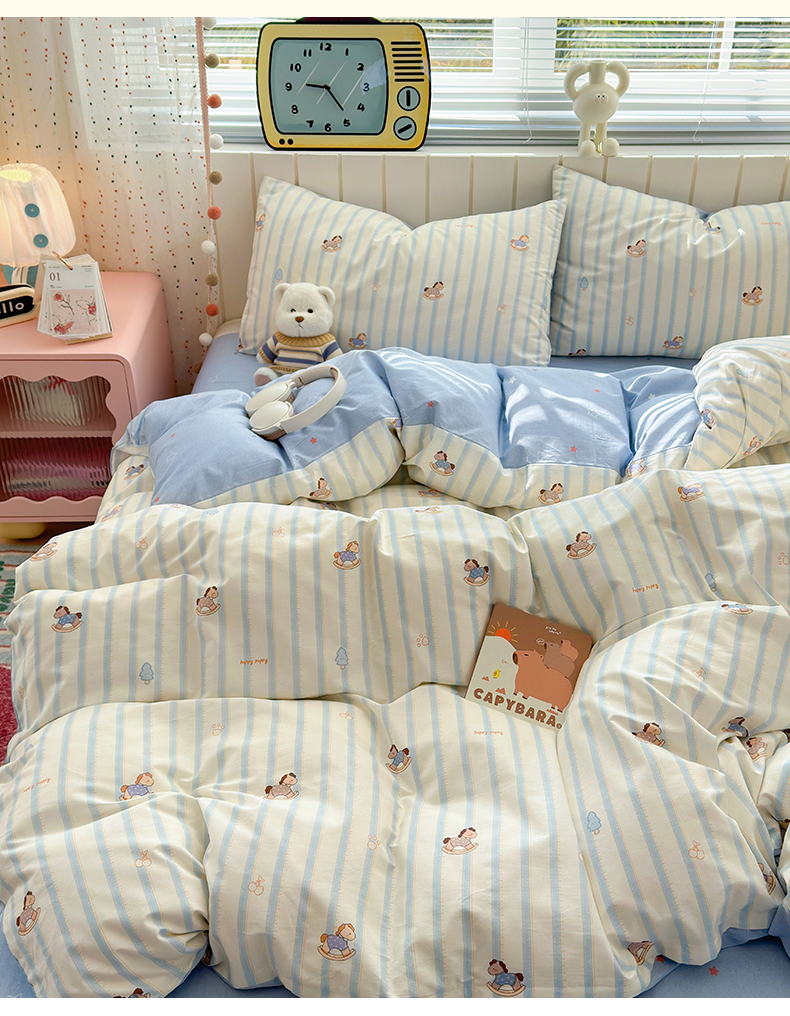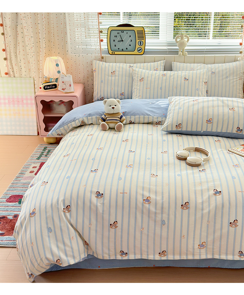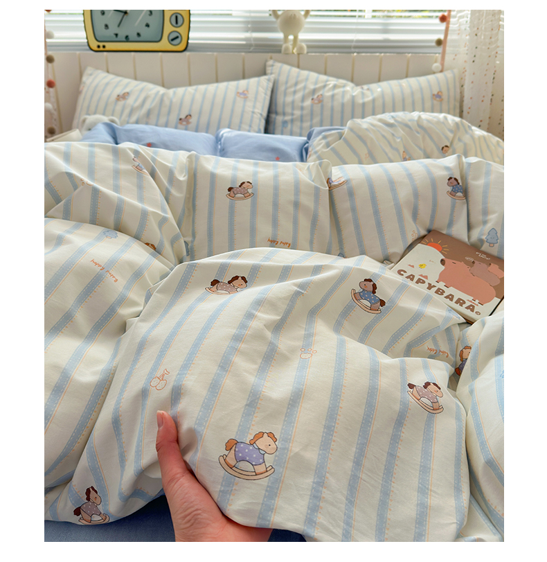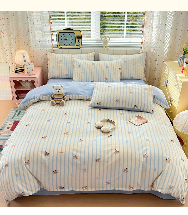 当前位置: 91家纺网 > 商品网购 > 床品套件 > 四件套 > 全棉普通四件套 > 清雅福 2026春夏新款INS小清新40支全棉13372四件套第二批 跷跷马