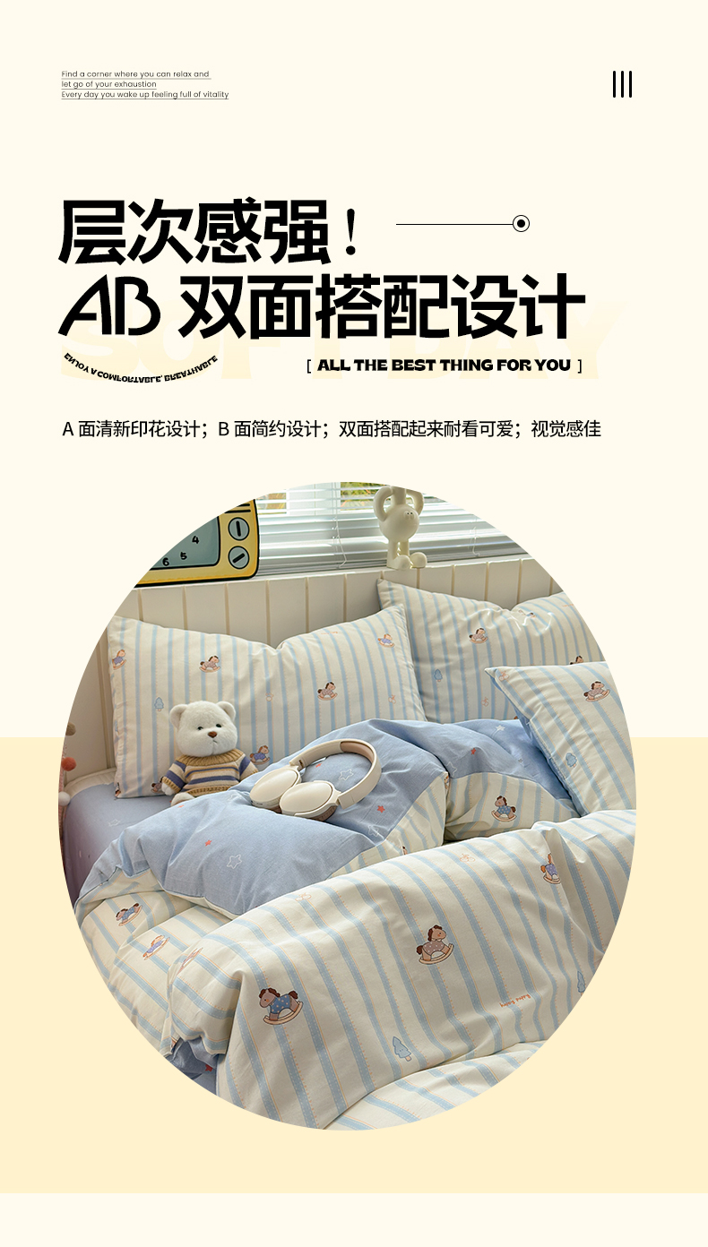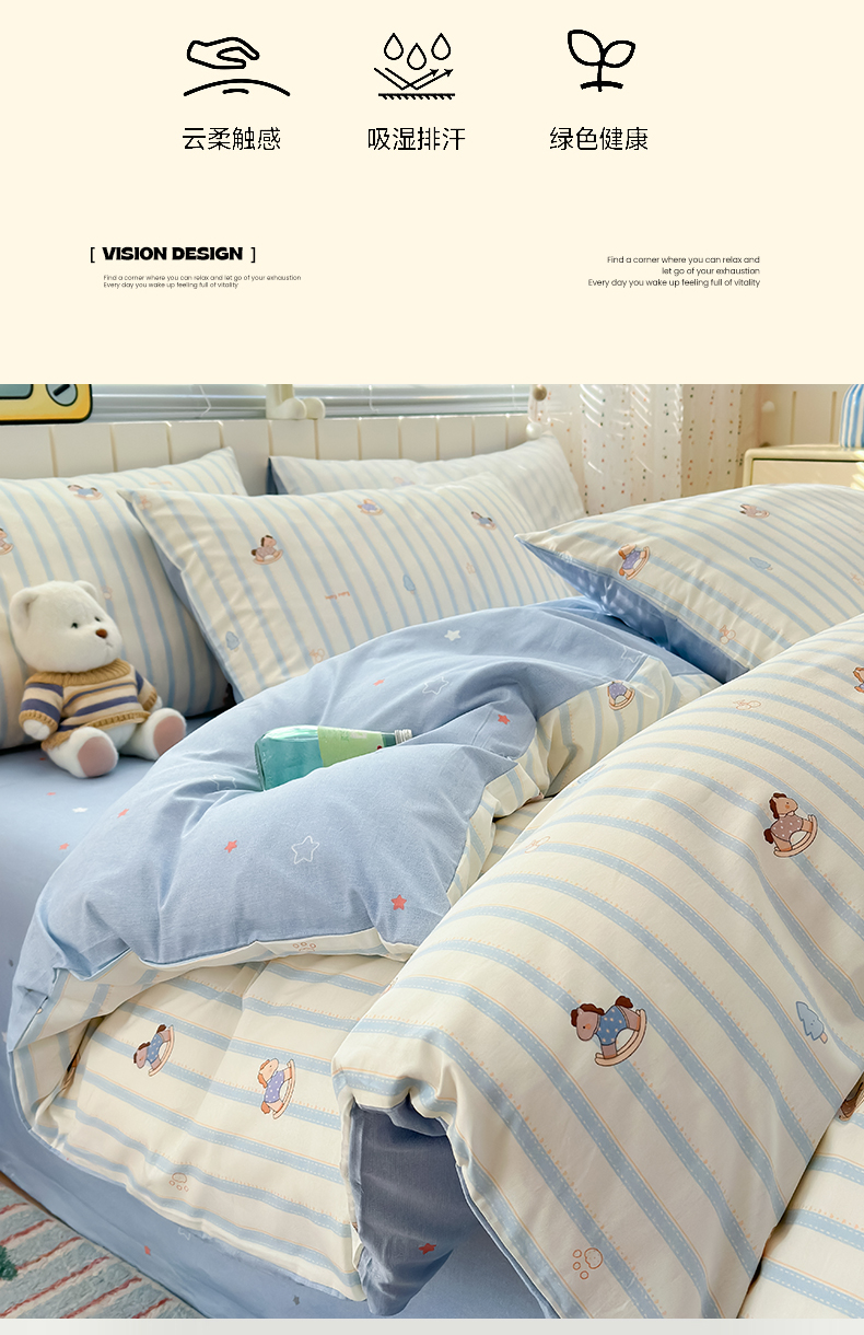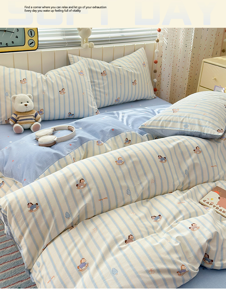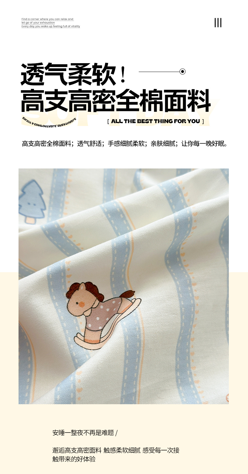 当前位置: 91家纺网 > 商品网购 > 床品套件 > 四件套 > 全棉普通四件套 > 清雅福 2026春夏新款INS小清新40支全棉13372四件套第二批 跷跷马