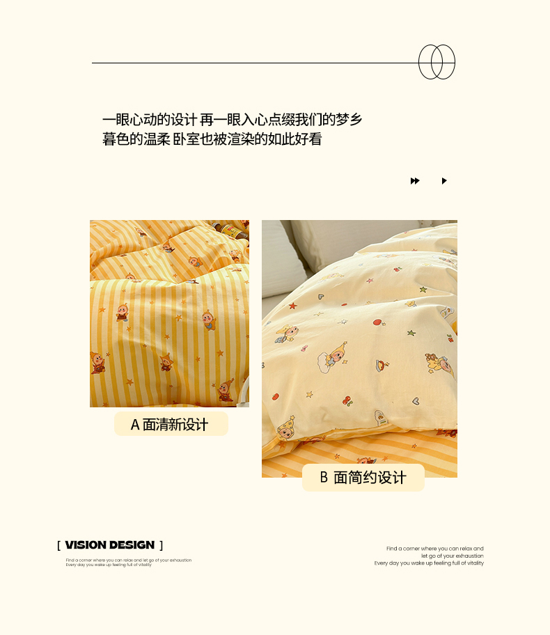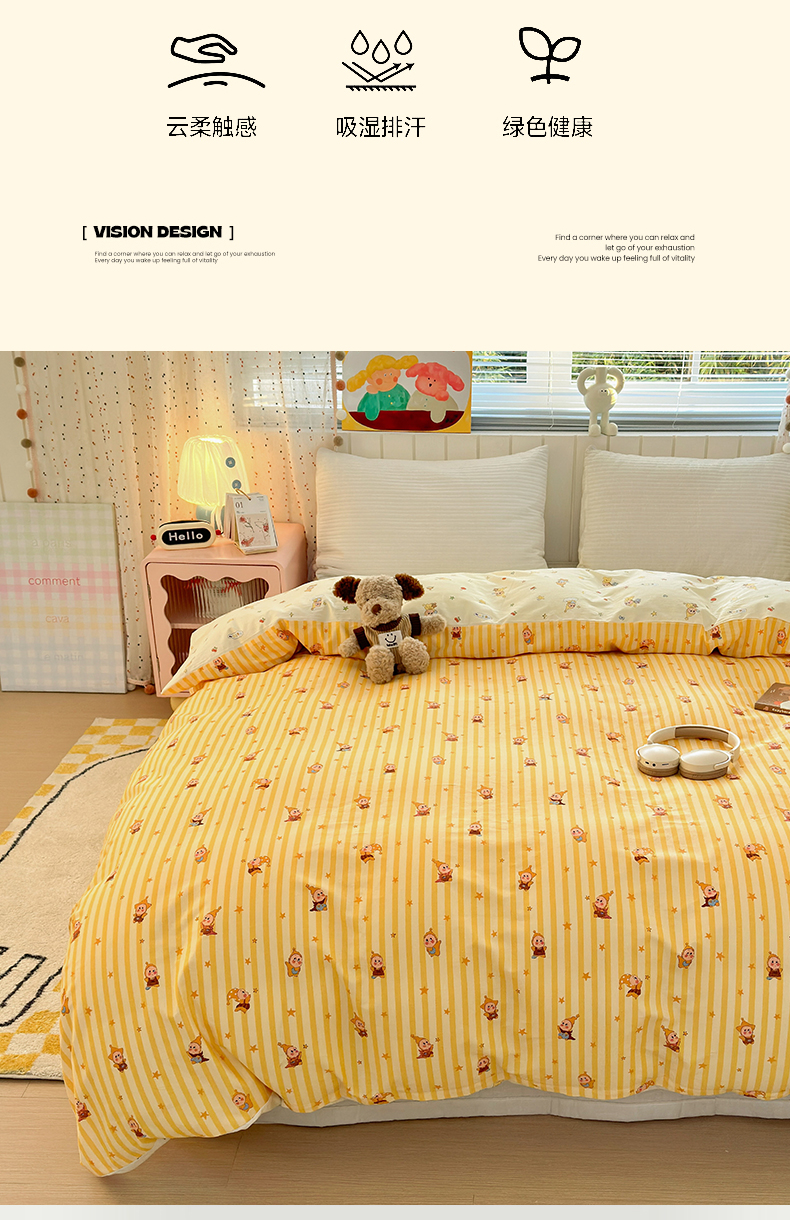 • 91家纺网 家纺一手货源 找家纺 清雅福 2026春夏新款INS小清新40支全棉13372单被套第二批 可爱萌星