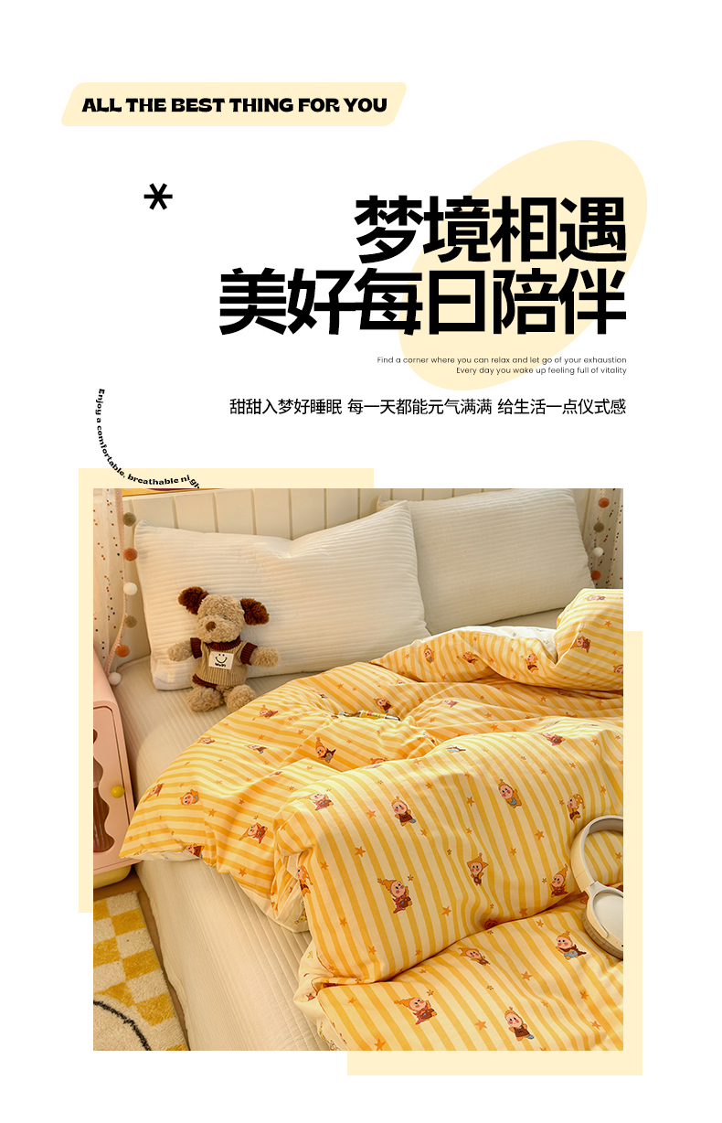 当前位置: 91家纺网 > 商品网购 > 床上用品 > 被套 > 清雅福 2026春夏新款INS小清新40支全棉13372单被套第二批 可爱萌星