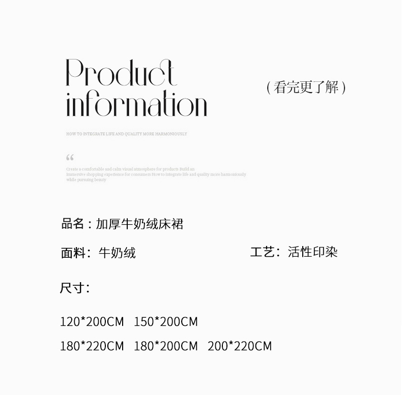 商品名称:(总)优家居工厂店 2026新款纯色韩版花边牛奶绒床裙床罩加厚直播外贸可定做