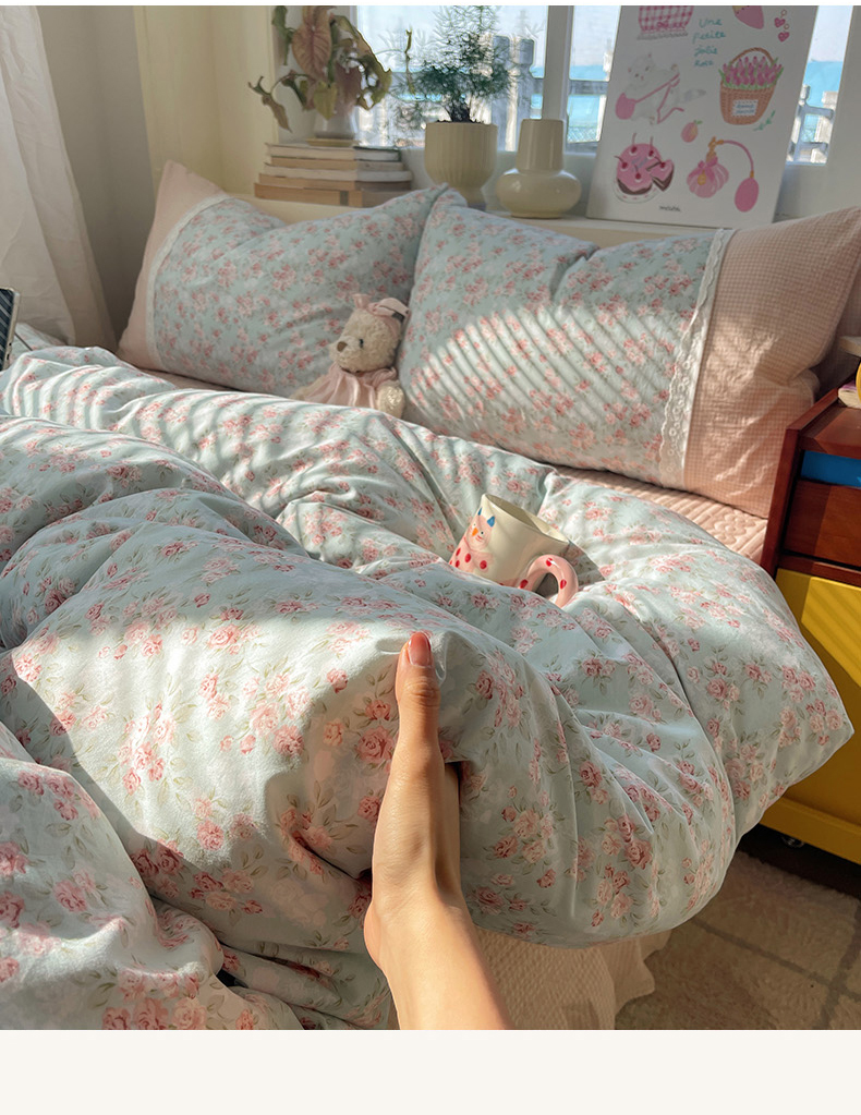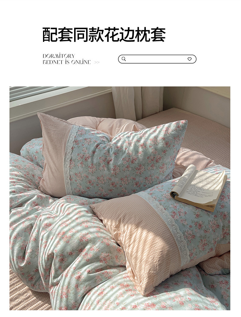 当前位置: 91家纺网 > 商品网购 > 床品套件 > 四件套 > 水洗棉四件套 > 花漾家居 2026新款小红书爆款小清新格子双拼刺绣小花边古法水洗棉四件套 茉莉清风