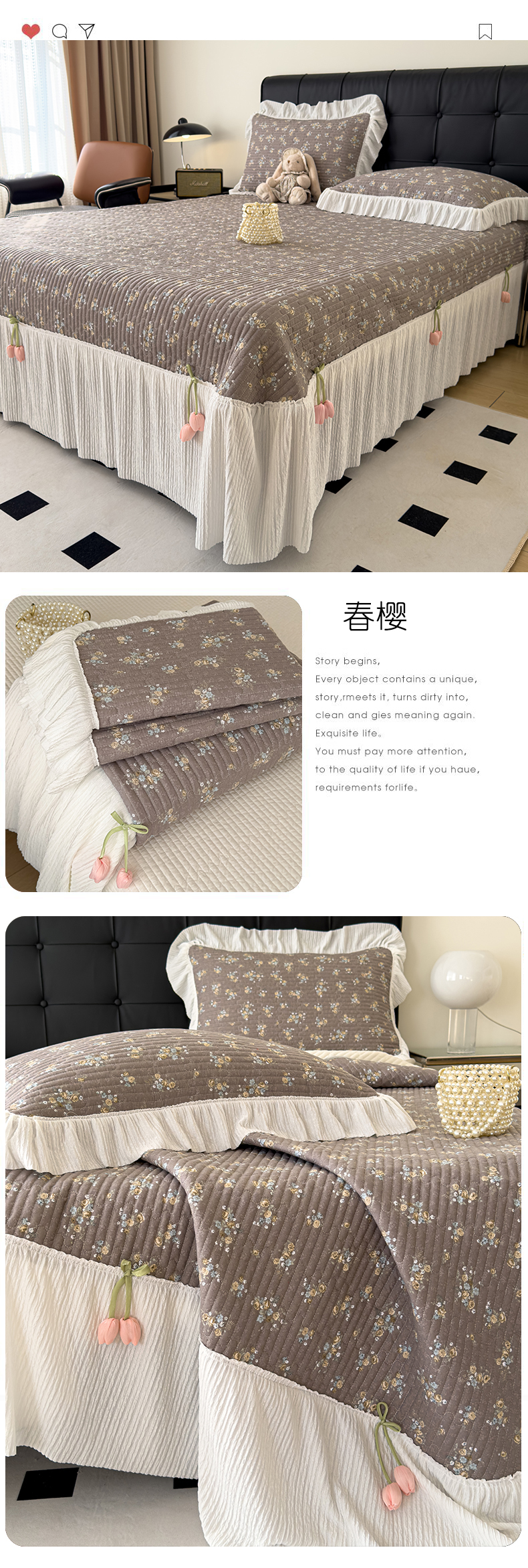 商品名称:(总)花漾家居 2026新款雪尼尔雪纺蕾丝大花边床盖单品床盖单件三件套