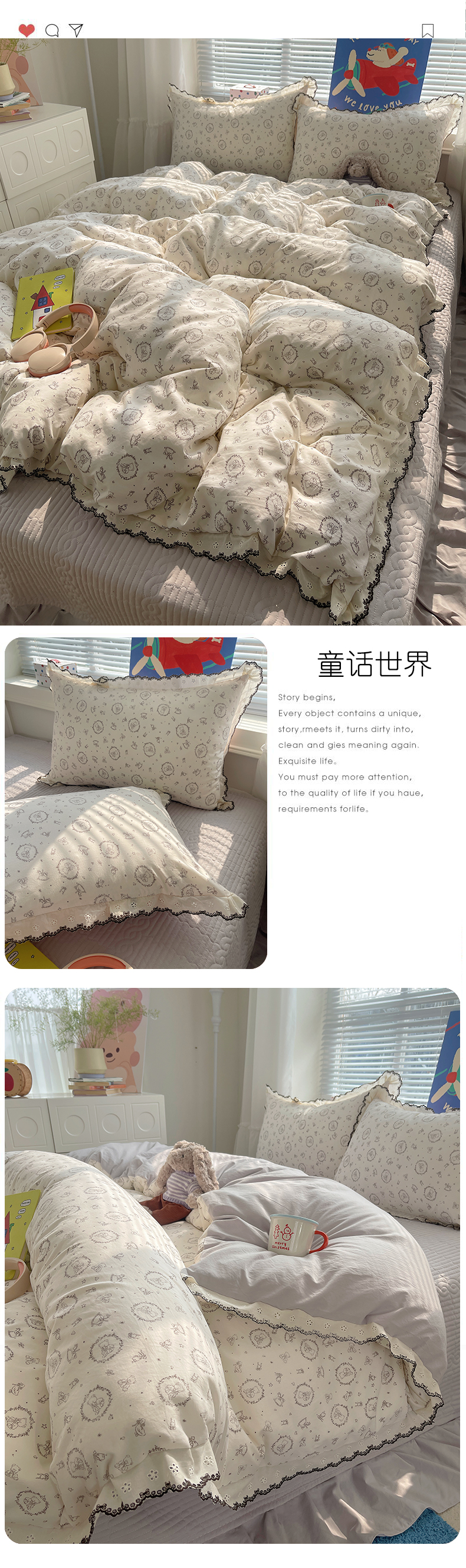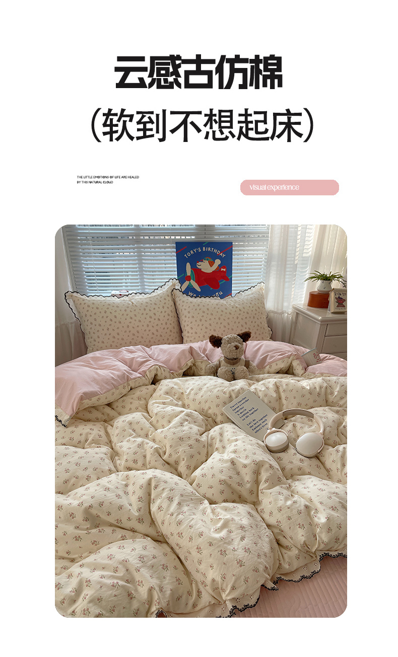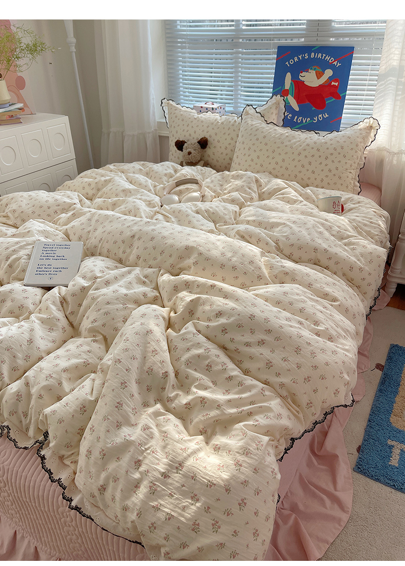 当前位置: 91家纺网 > 商品网购 > 床品套件 > 四件套 > 其它四件套 > 花漾家居 2026小红书推荐款小清新刺绣花边款床单床盖款四件套新款 甜心小花