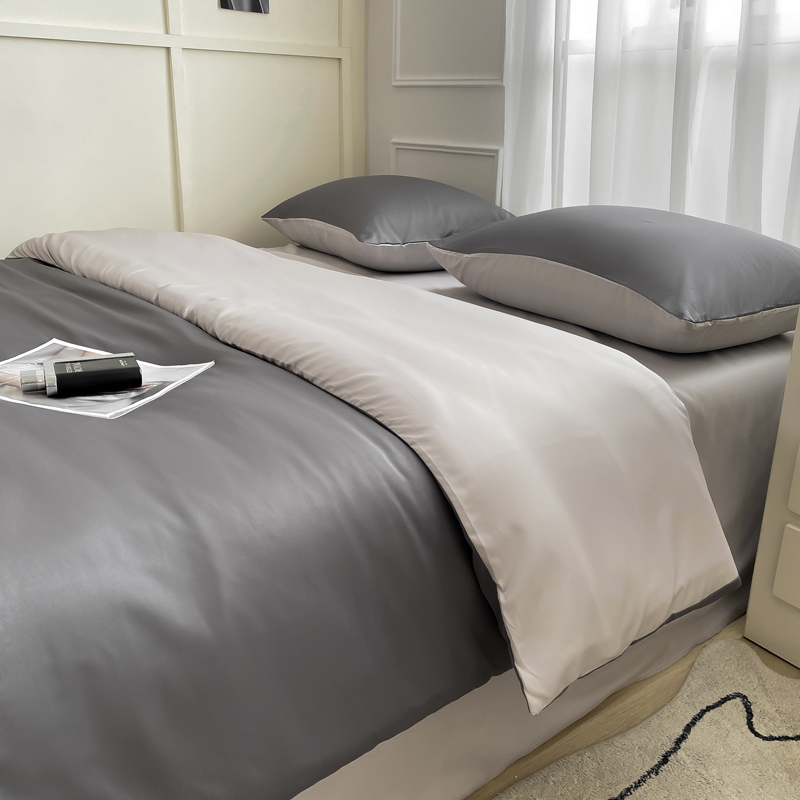 乐沐家纺 2026新款春夏水洗冰丝单被套 魔法灰白