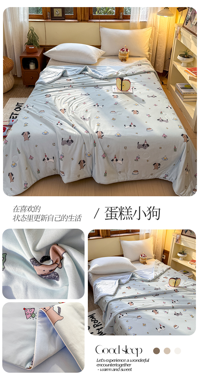 (总)梦恬佳 2026新款牛奶丝针织棉夏凉被空调被,蛋糕小狗,花从间,快乐小熊,莱茵咖,萝卜兔,洛克庄园,奶芙小猫,奶油星星,苹果熊,汽车派对,蔷薇,邂逅花海