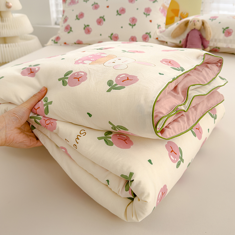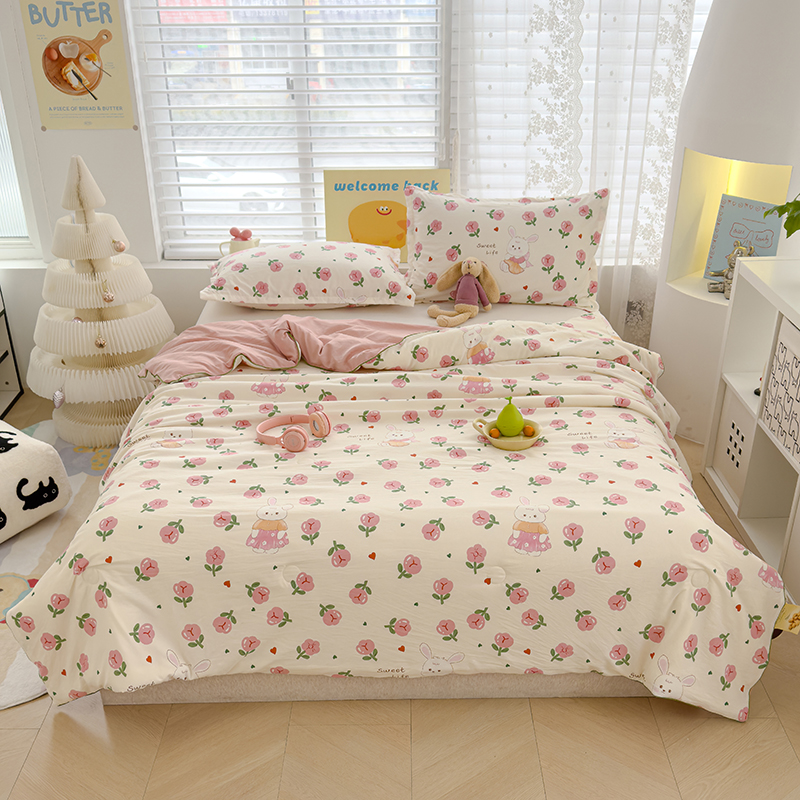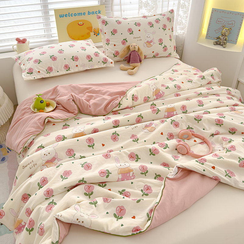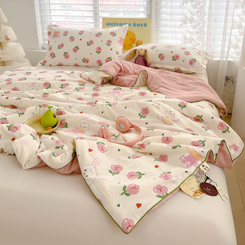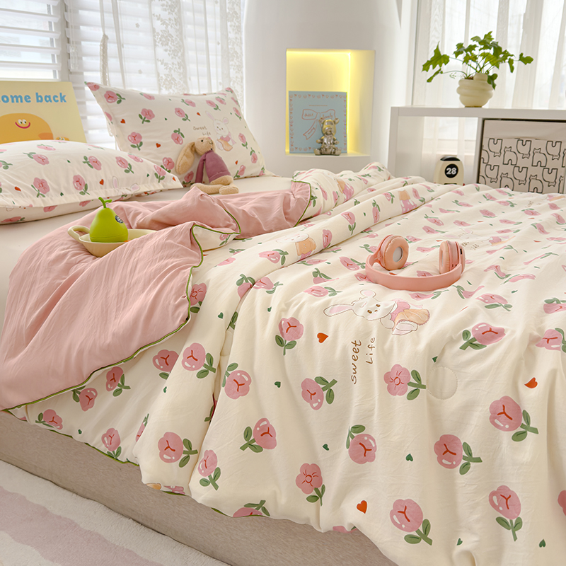 桔禾家纺 2026水洗皱皱纱夏被 曼塔玫瑰