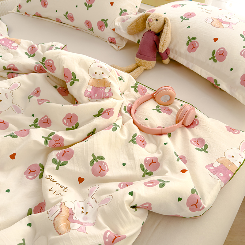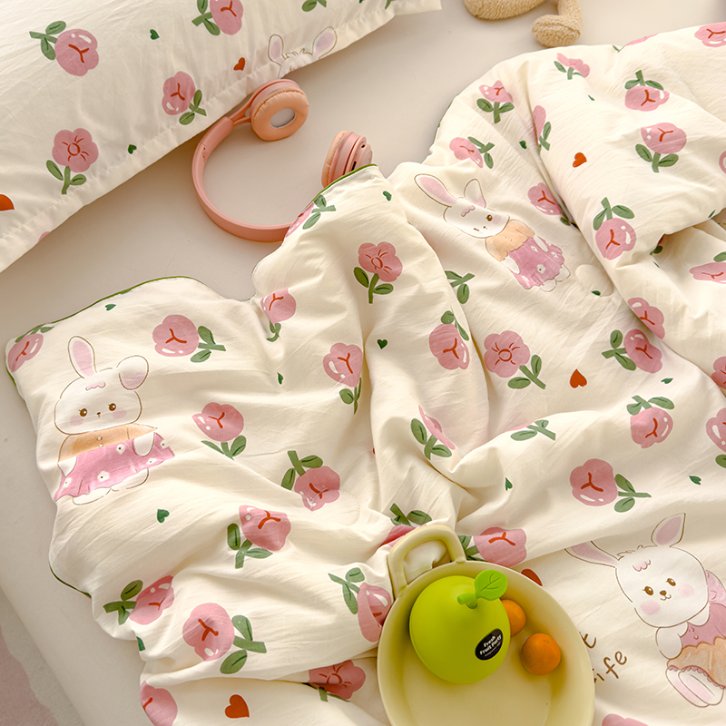 (总)桔禾家纺 2026新款高克重小清新可爱风泡芙棉全棉镂空花边款夏被四件套夏凉被空调被四件套,蝶语,花町软猫,花枝梦,马卡龙爱心,美莓果,迷迭香,清甜印记,石榴花开,碎花集,兔小妹,温柔花束,熊趣,絮朵,摇摇马,云朵熊,包装图仅供展示不可下单