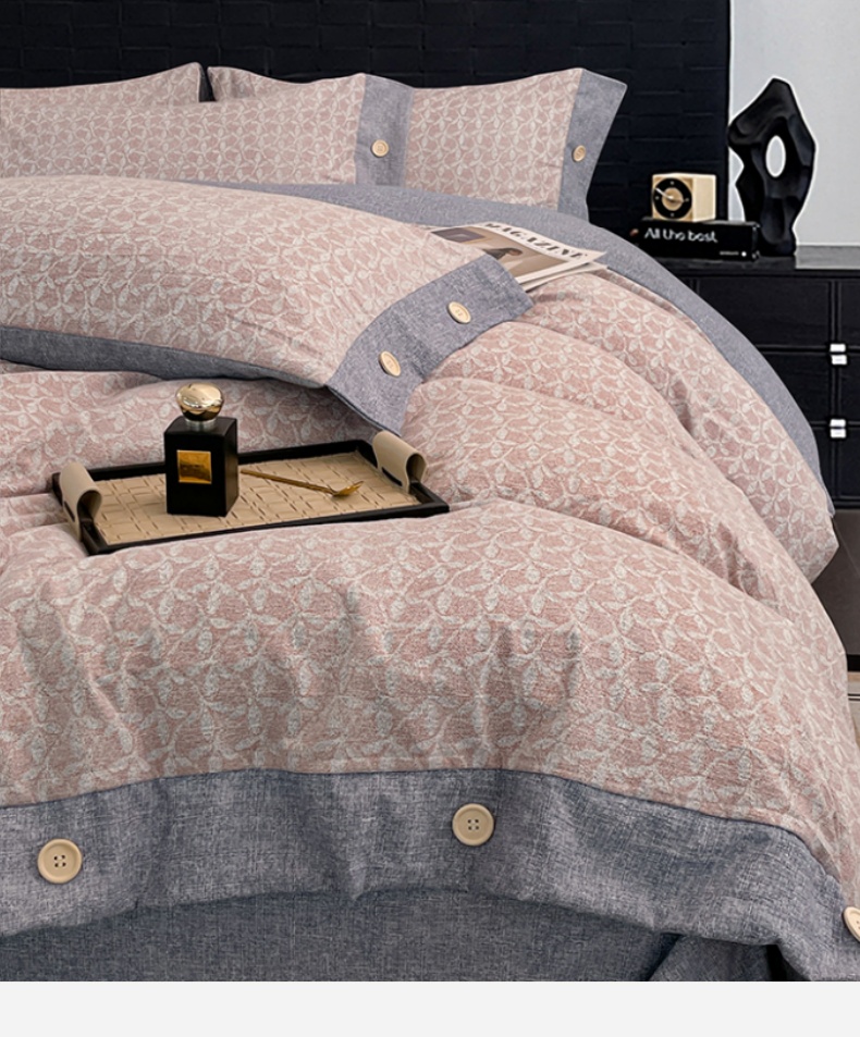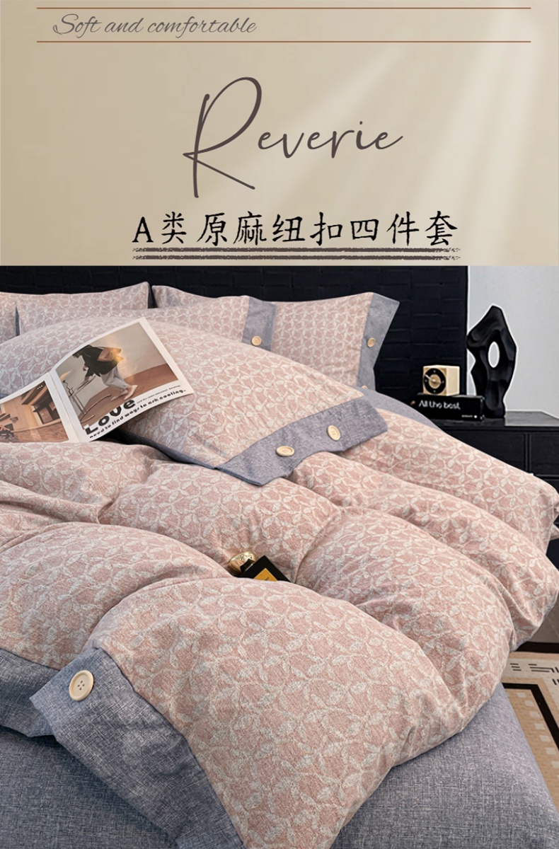 当前位置: 91家纺网 > 商品网购 > 床品套件 > 四件套 > 其它四件套 > 圣比熊 2026春夏新款A类原麻纽扣四件套加厚被套床单宿舍双人床仿亚麻套件-最新款 叶影