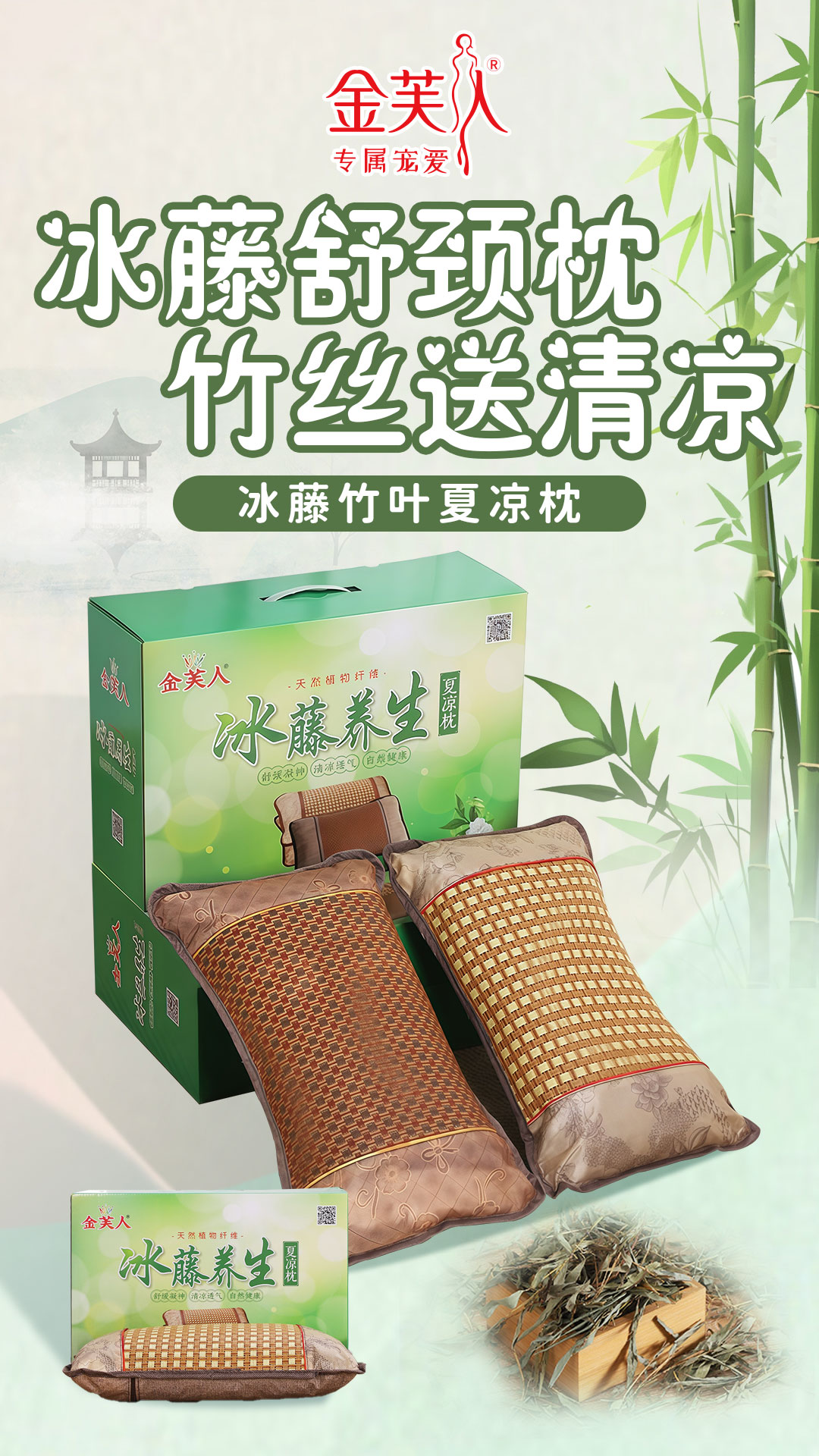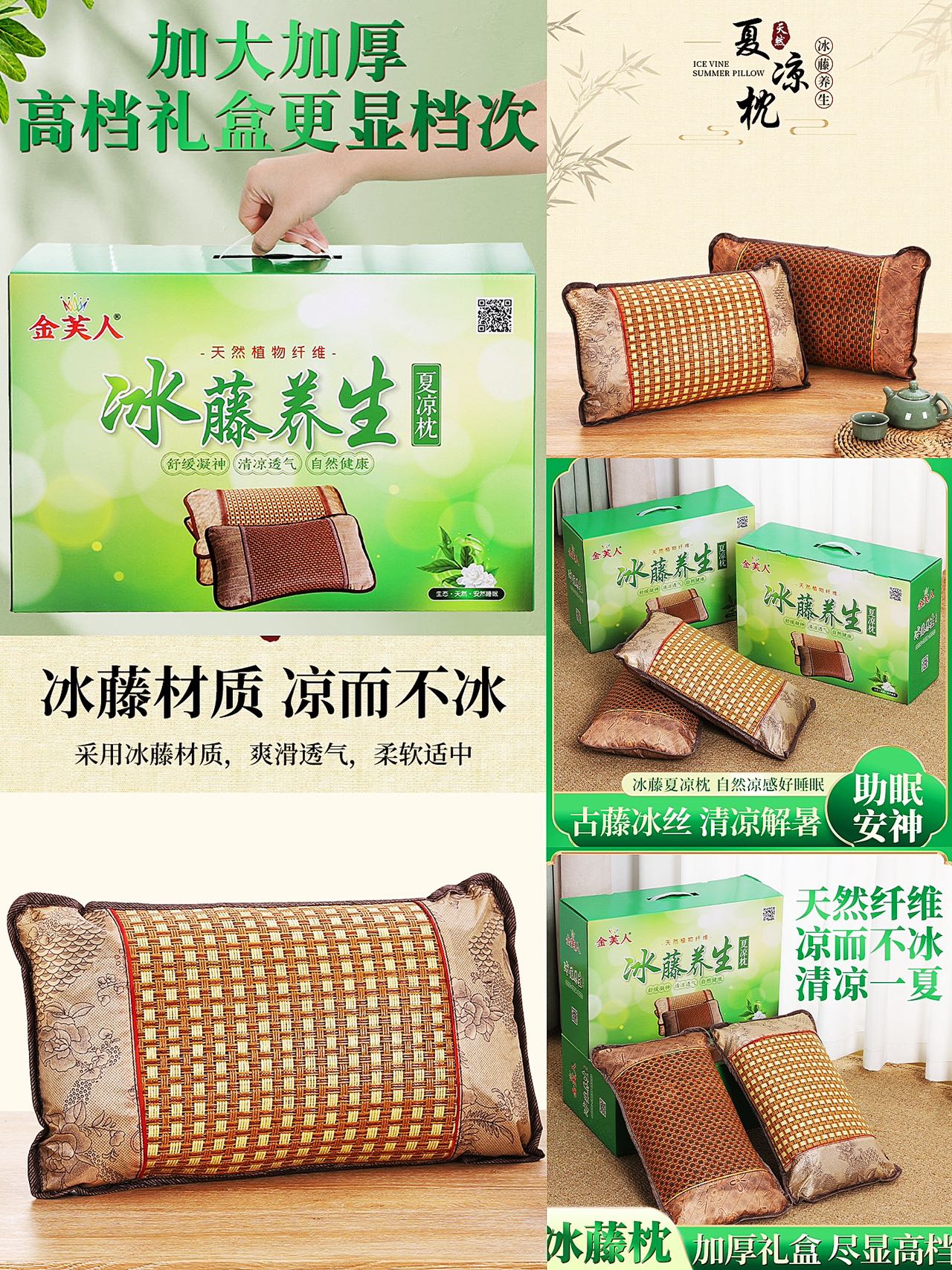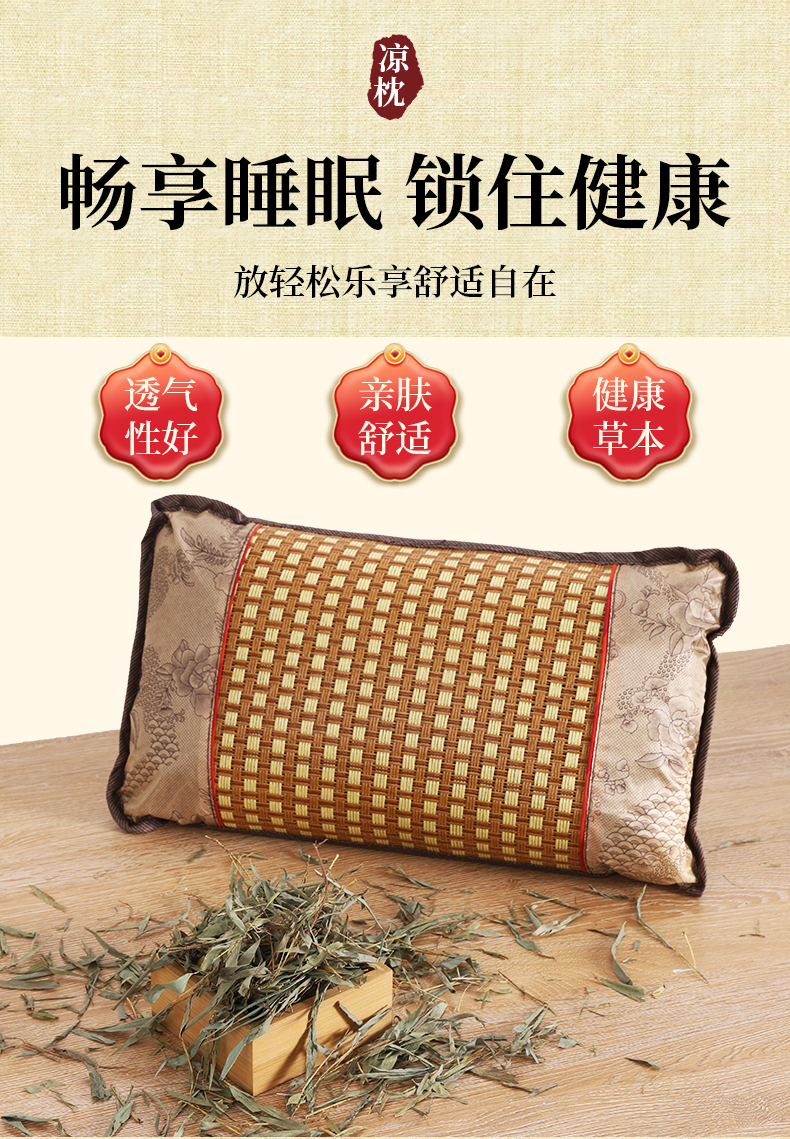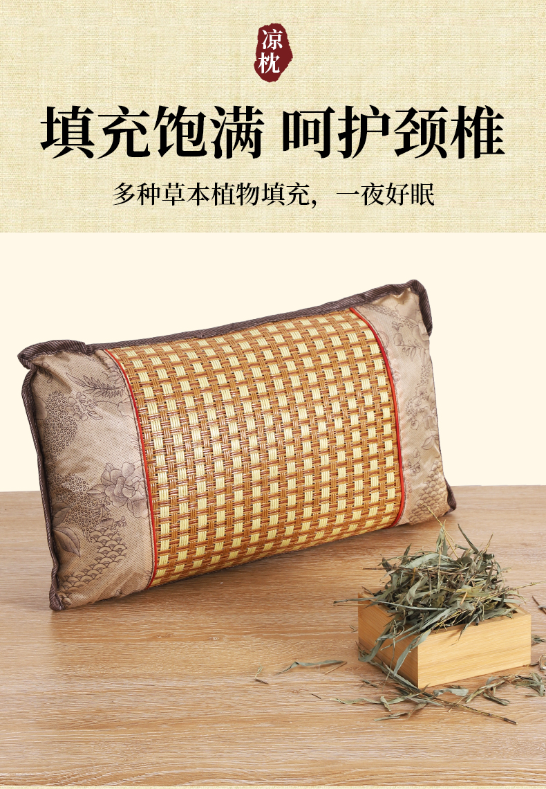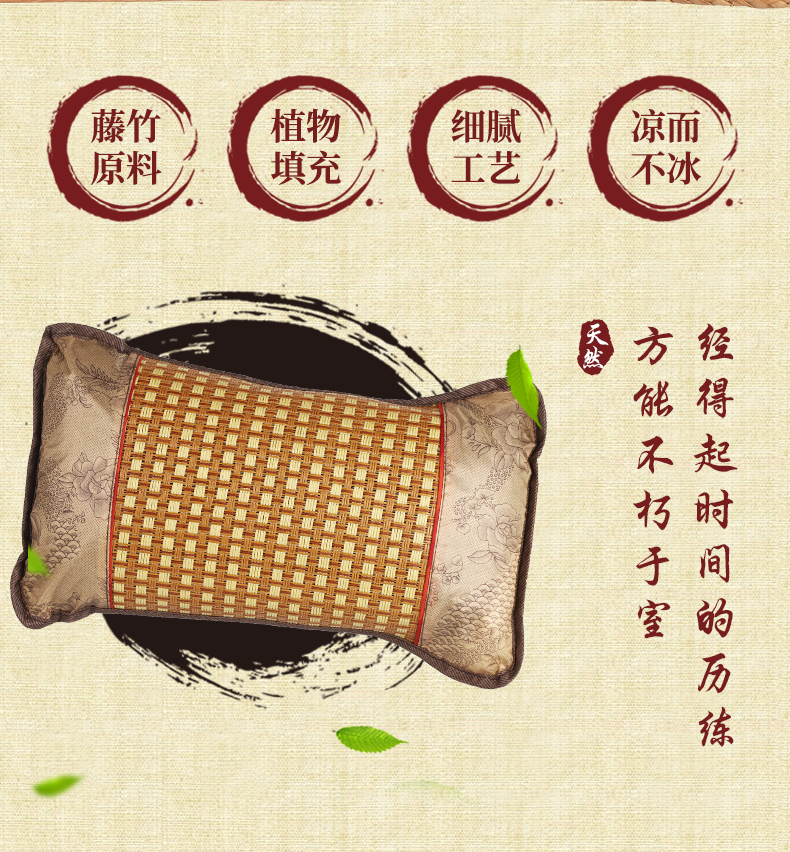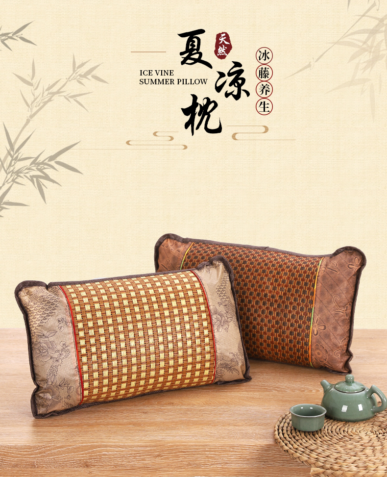 商品名称:(总)茶香枕冰藤竹叶夏凉枕头冰丝腾面凉枕护颈凉席枕芯竹枕藤枕夏季礼品促销会销团购礼盒装