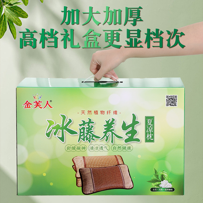 (总)茶香枕冰藤竹叶夏凉枕头冰丝腾面凉枕护颈凉席枕芯竹枕藤枕夏季礼品促销会销团购礼盒装