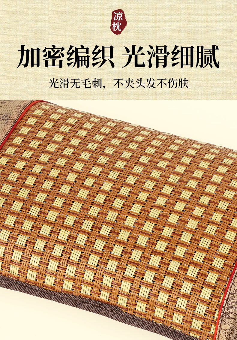 (总)夏季凉席枕头藤席枕套冰丝凉感护颈椎枕礼品团购促销会销礼盒装,浅棕色
