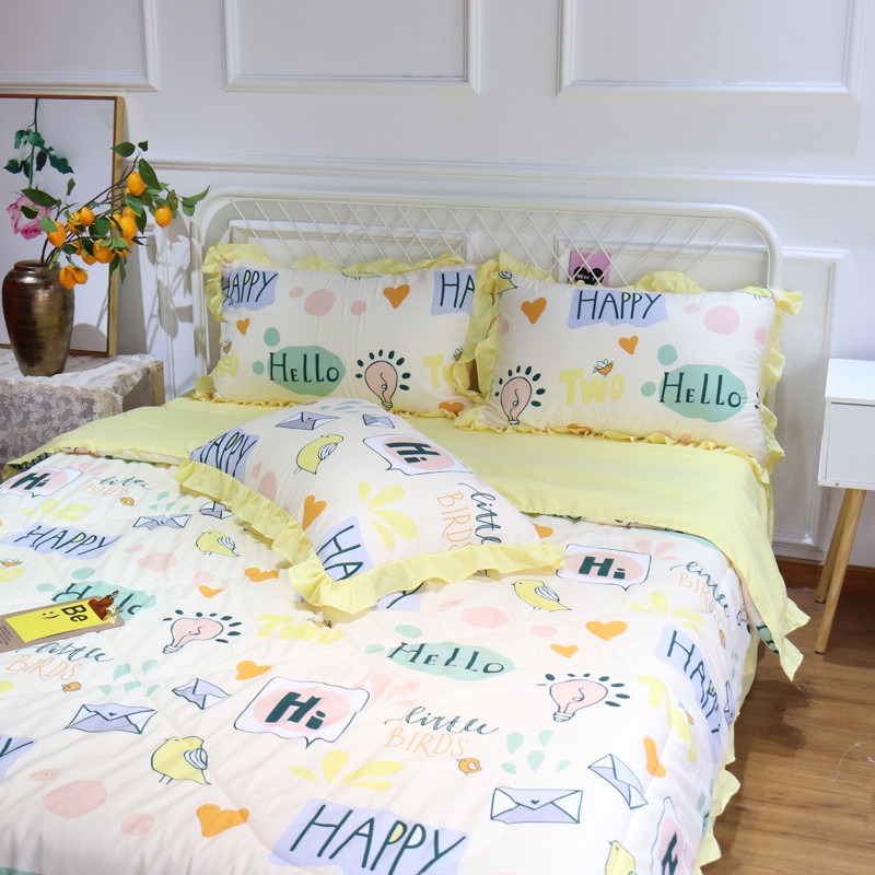 商品名称:润缦 2020新款超柔水洗棉夏被四件套 快乐小鸟