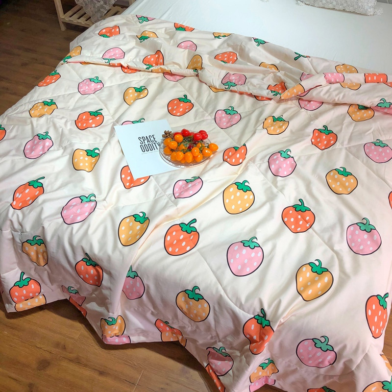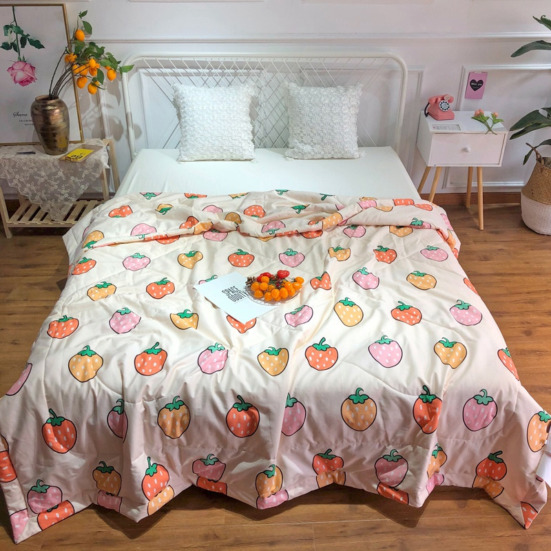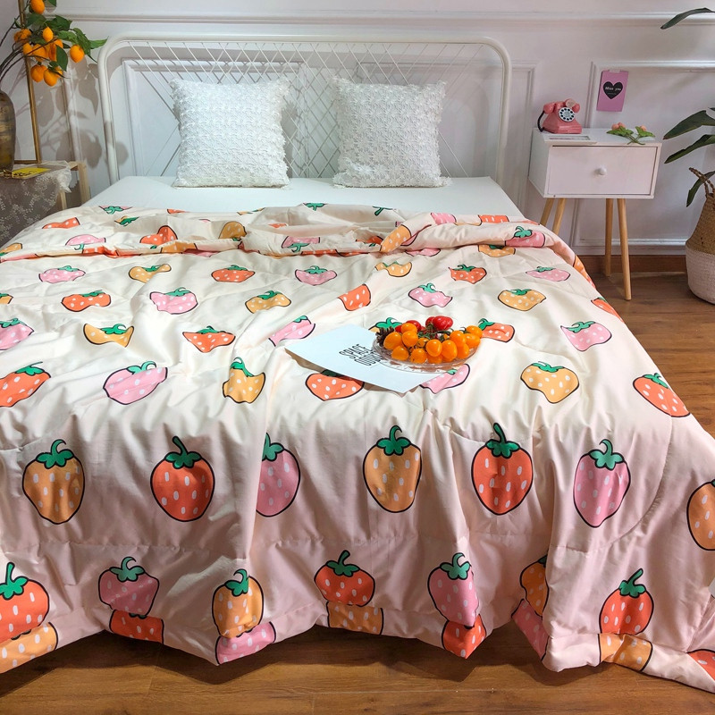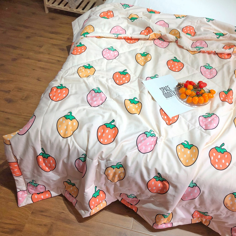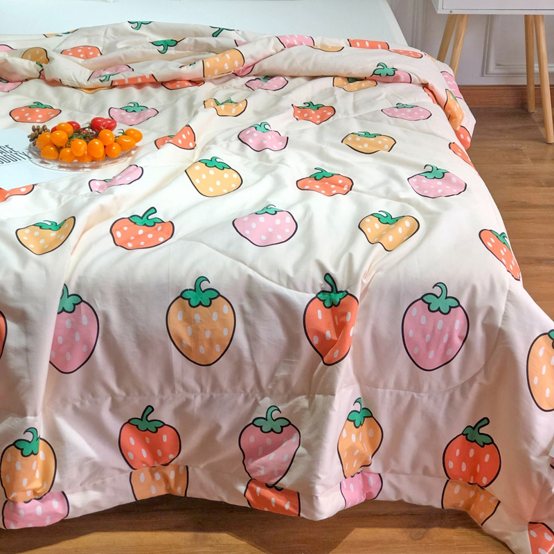 润缦 2020新款纯棉全棉精梳棉夏被 白草莓