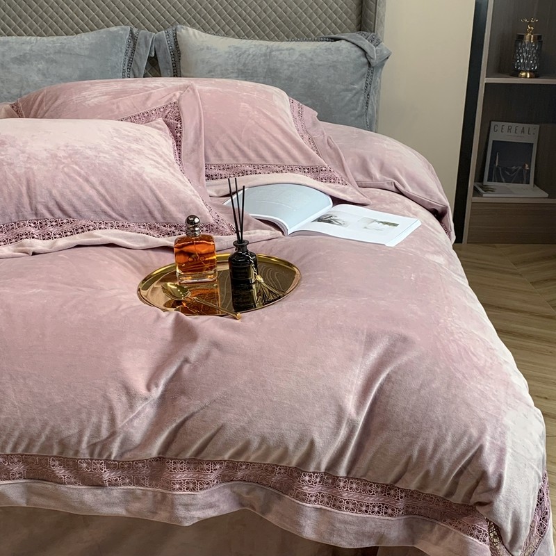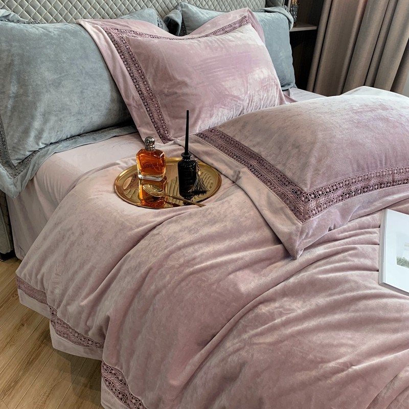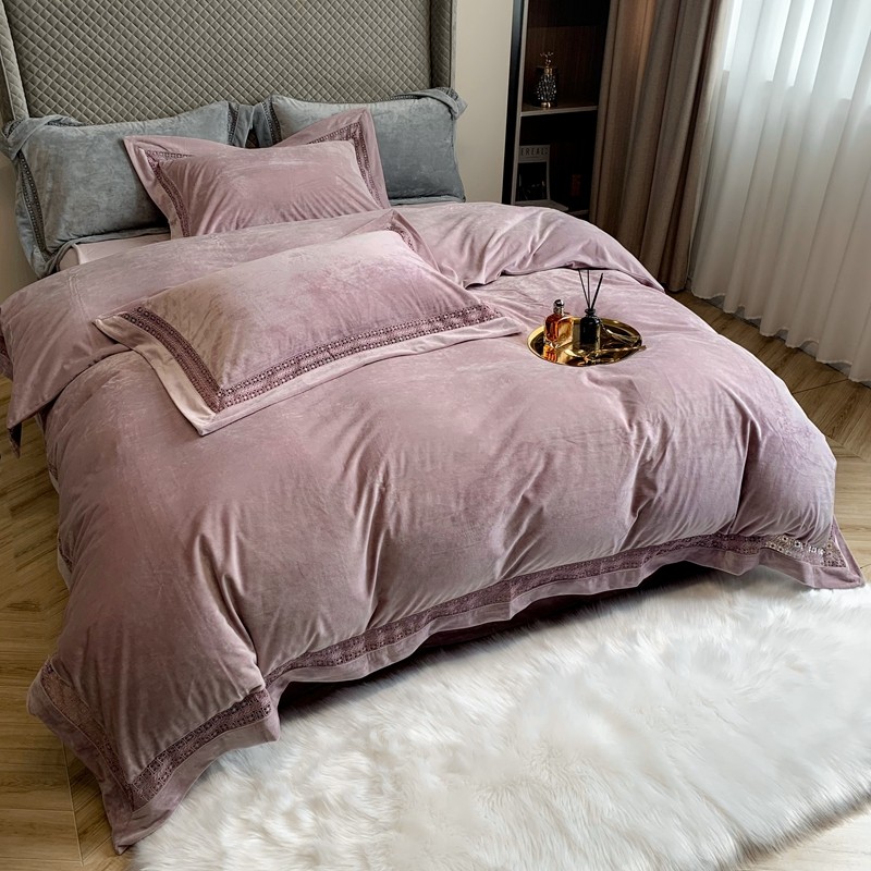 榻尚 2021新款婴儿绒牛奶绒纯色镂空高端绒四件套 藕荷紫