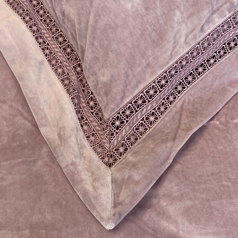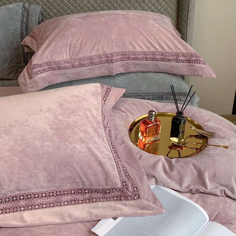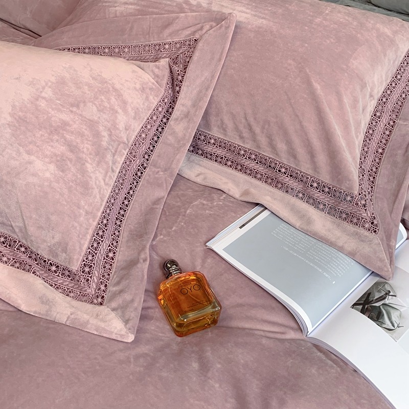 绒【云梦系列】低调静馨 淡雅沉静 不同色系 不同感受 本身自带光泽感 搭配镂空设计拼边 工艺复杂 脱颖而出 最与众不同之处 采用 国家安全技术类别 A类 婴肤绒 质感手感 都让人迷恋 最爱的生活方式 大概就与柔软的床品为伴
