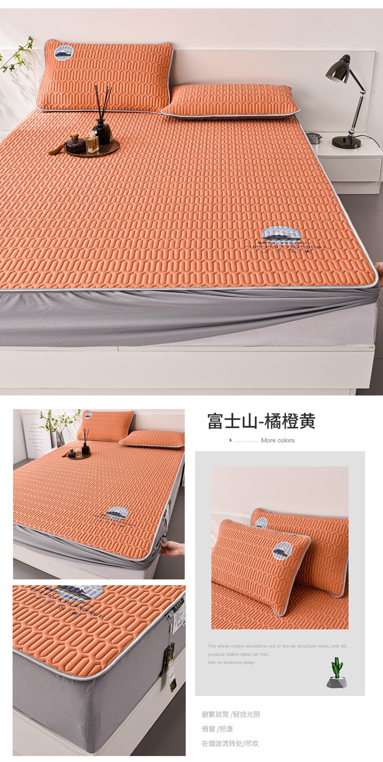 商品名称:好眠好梦 2023A类乳胶凉席-富士山床笠款 富士山-橘橙黄