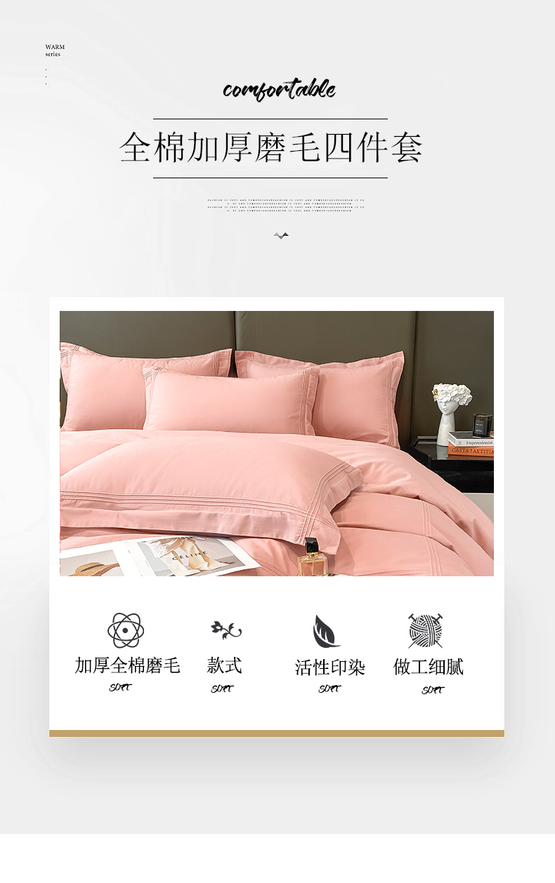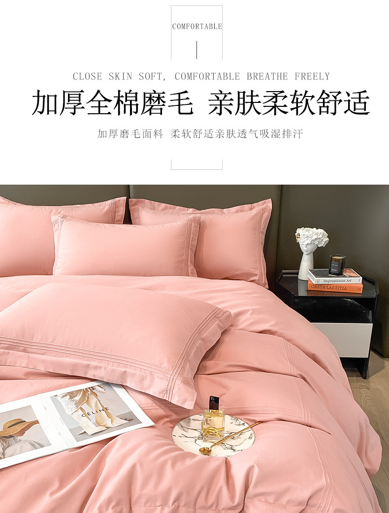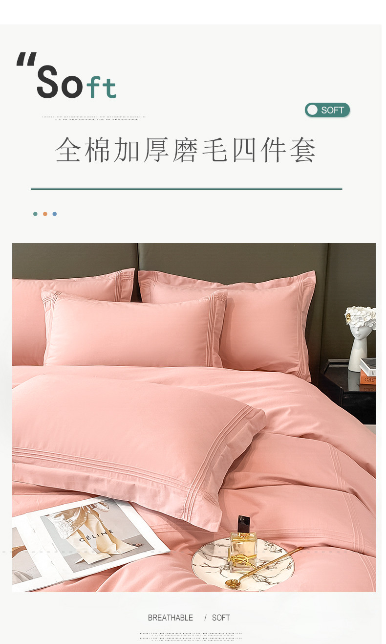 商品名称:安妮 2022新款轻奢赫本加厚全棉磨毛四件套 赫本柔蜜粉
