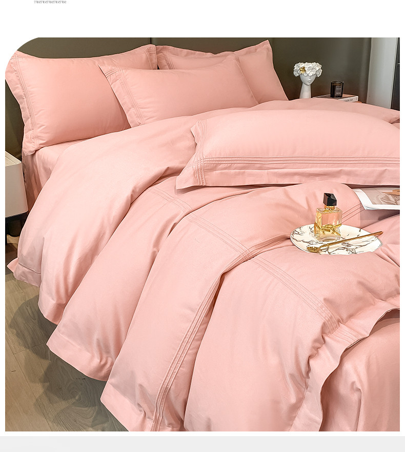 (总)安妮家居 2025新款100S长绒棉贡缎纯色四件套,水漾蓝,胧月灰,奶白色,蔷薇粉,柔缦紫,砂砾咖